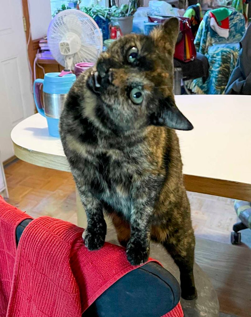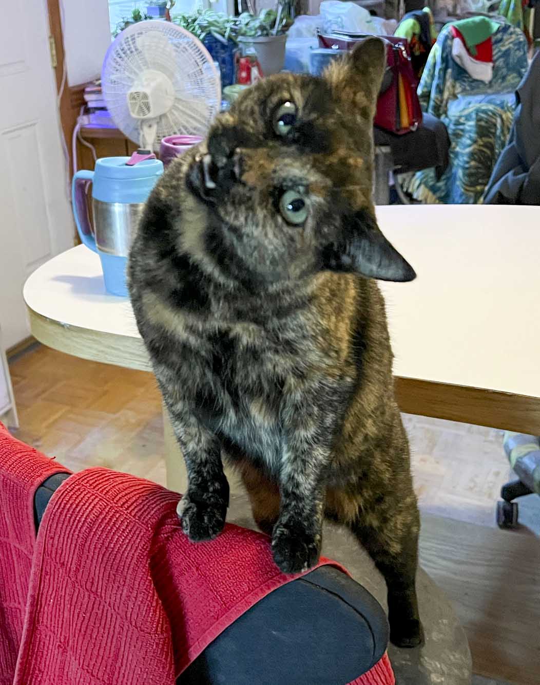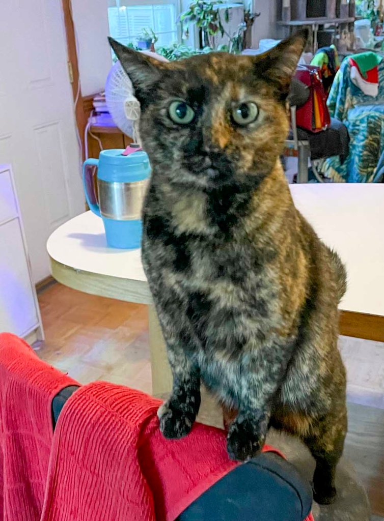 She’s a tortoise shell calico of mixed calic. Thanks, Cindy.