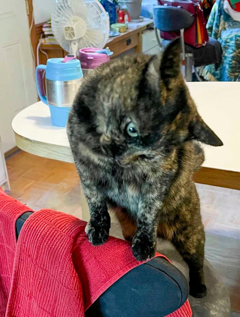 She is always getting on me and making me pet her. She is very insistent. Thanks, Julie.