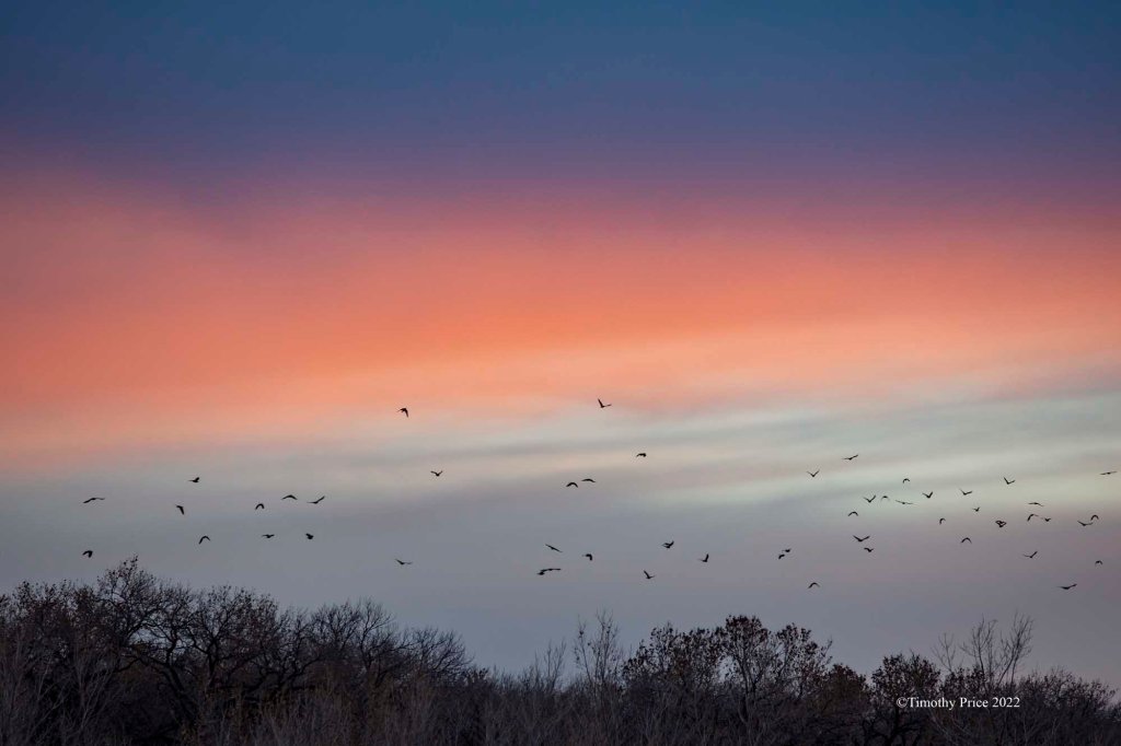 Spat February 1, 2022 Timothy Price49 Comments While the crows flew along their highway from nowhere to somewhere, a couple of cranes had a spat. The forecast is for snow. Let’s see what happens.