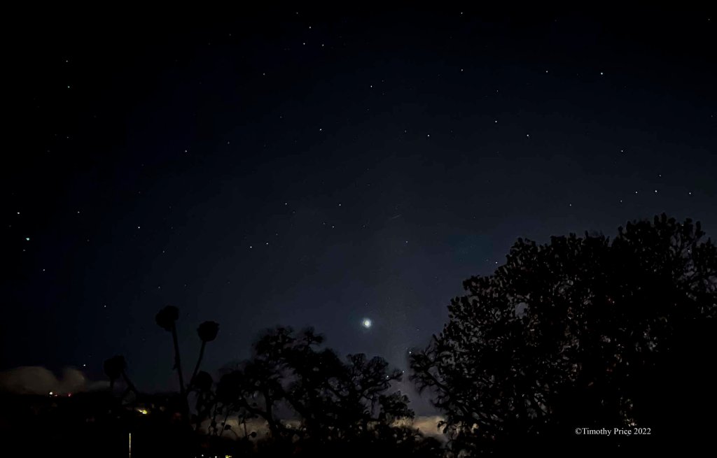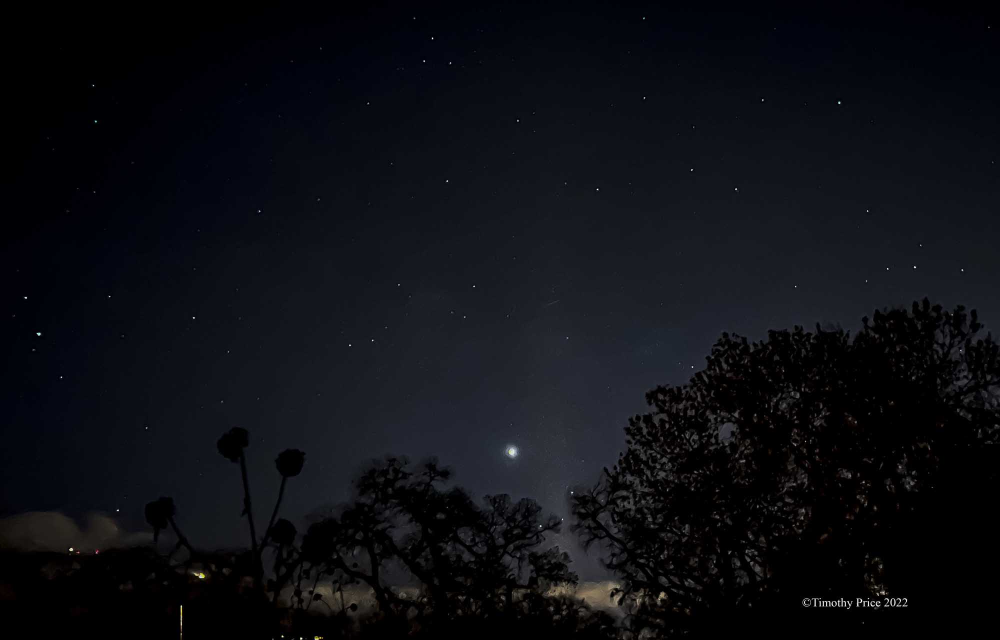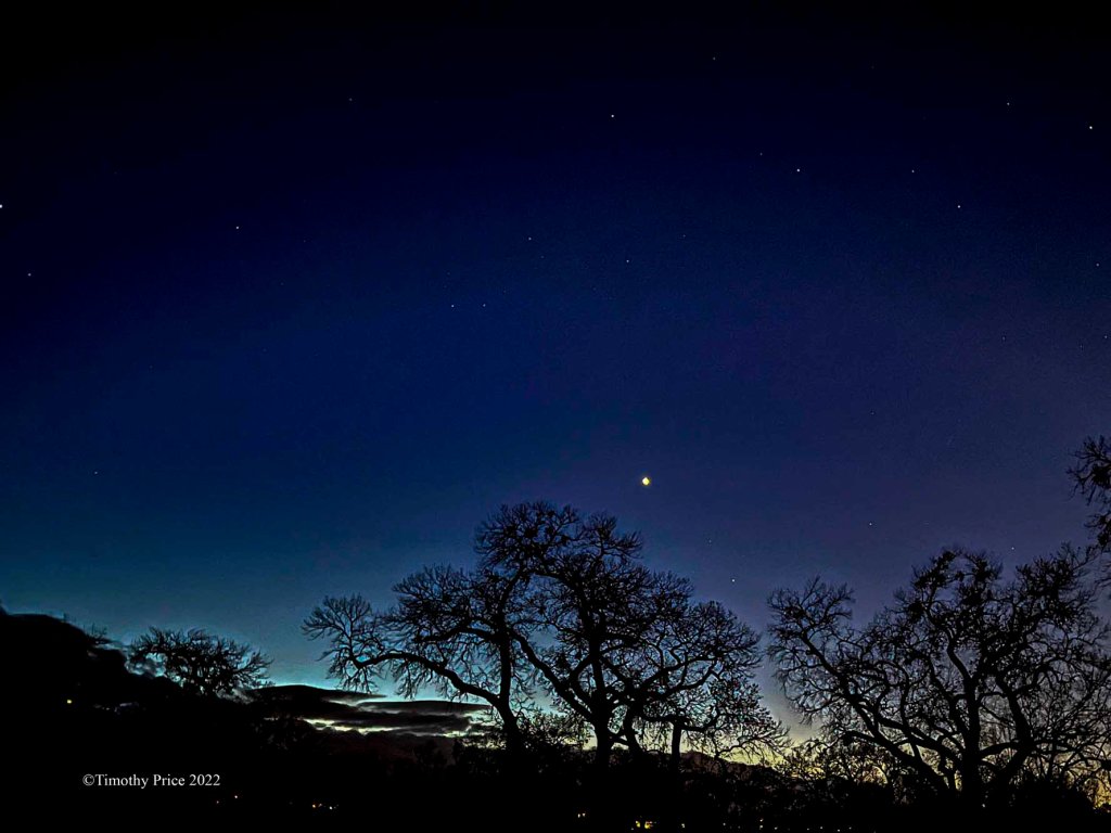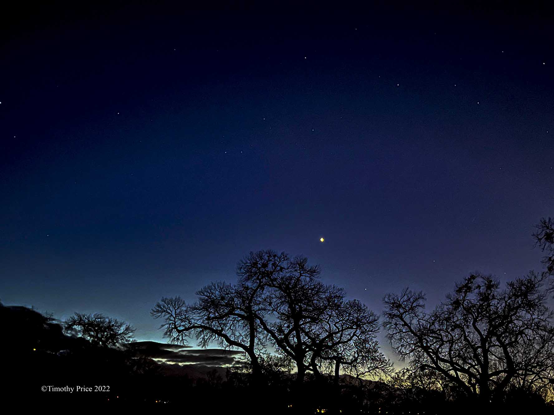 About 15 minutes later, Venus was on the edge of Resa’s Tree and Mars was to the left above Gigi’s tree.