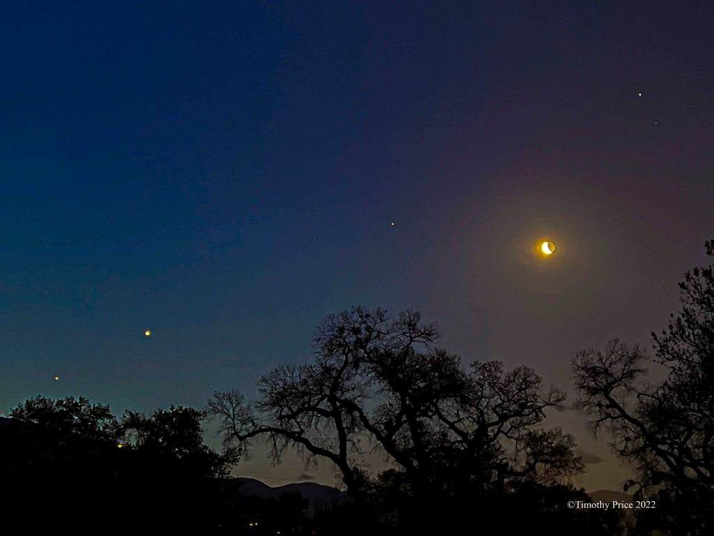 Jupiter and Venus were sitting side by side as they rose a little after 5:00 am. Mars and Saturn were in line with Venus spread out at almost equidistance between each. The sky was smokey from forest fires, and Saturn was in the smoke lit up by the light pollution from the city.