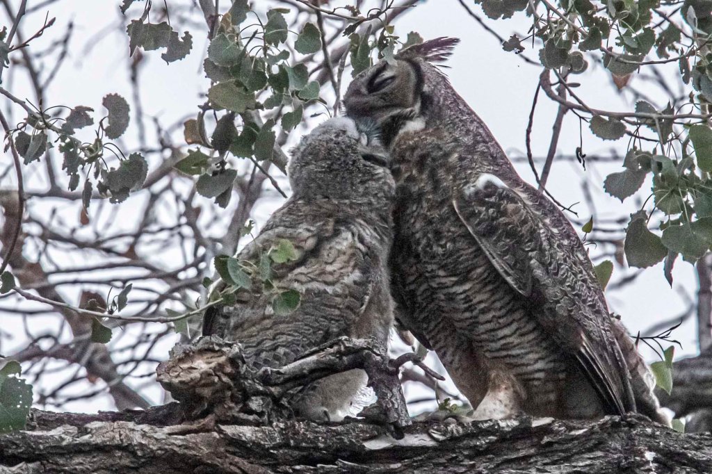 Mama Owl in the top of the tree above Paul and Mary. Peter in the tree across the ditch.