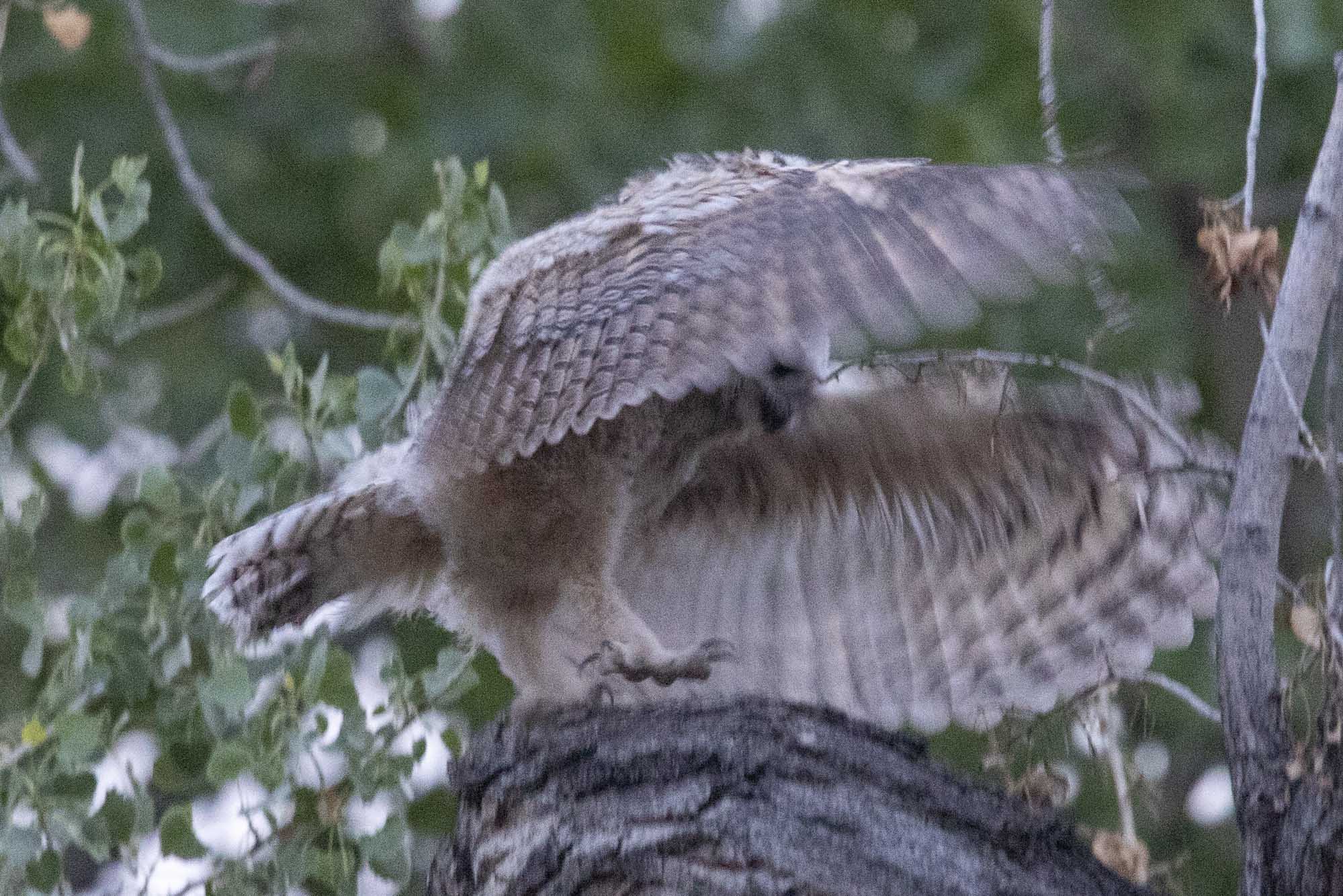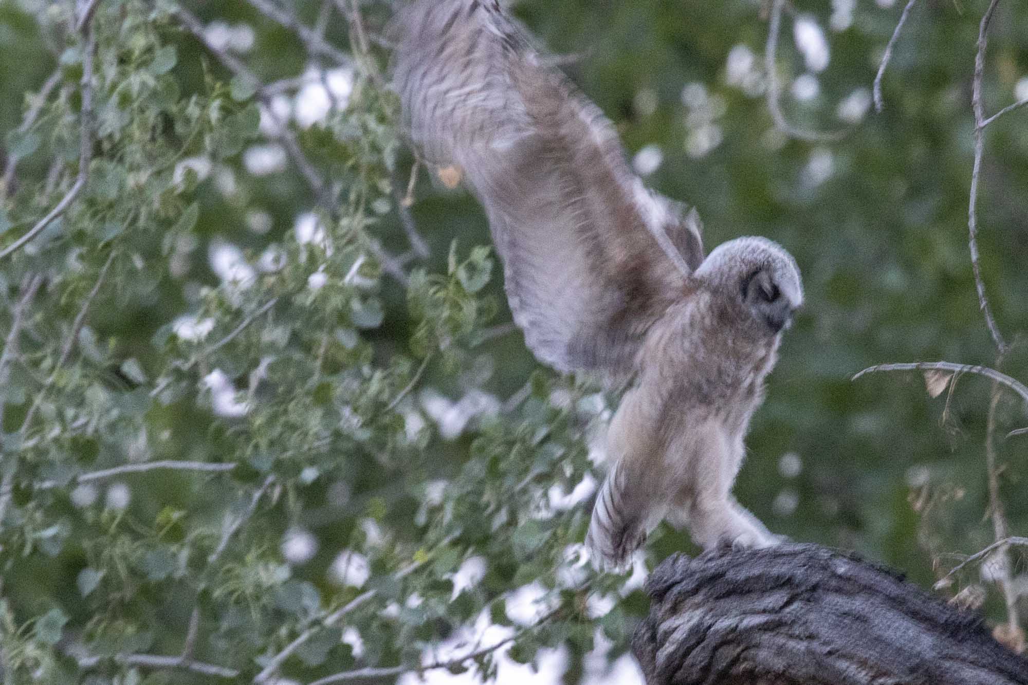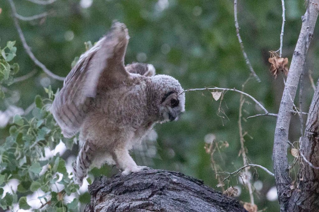 • Since the cottonwood is almost dead, they are really trying to get over to the trees with leaves so they can have shade. I think Paul is waiting for Mary. He demonstrated that he can fly pretty well tonight. Thanks, Susan.