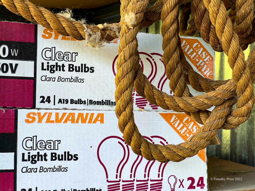 Any Bright Ideas? June 13, 2022 Timothy Price64 Comments Light bulbs let us seeRope hanging over the edgeWill we hang ourselves?