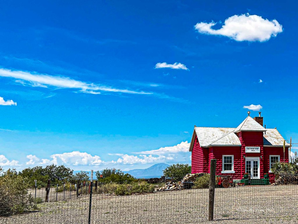 Three Rivers School 1904 on NM Highway 54 between Carrizozo and Tularosa. I don’t know anything about this building other than it sits behind the Three Rivers Trading Post, it’s old, it’s red, and where it is.