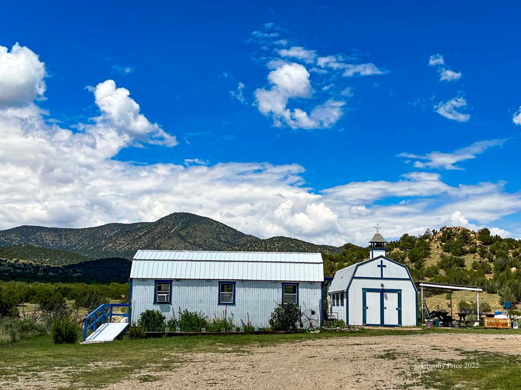 White Oaks, New Mexico doesn’t need no stinking cathedral or post-bank-style building for worship services. A TUFF SHED® with a steeple does just fine.