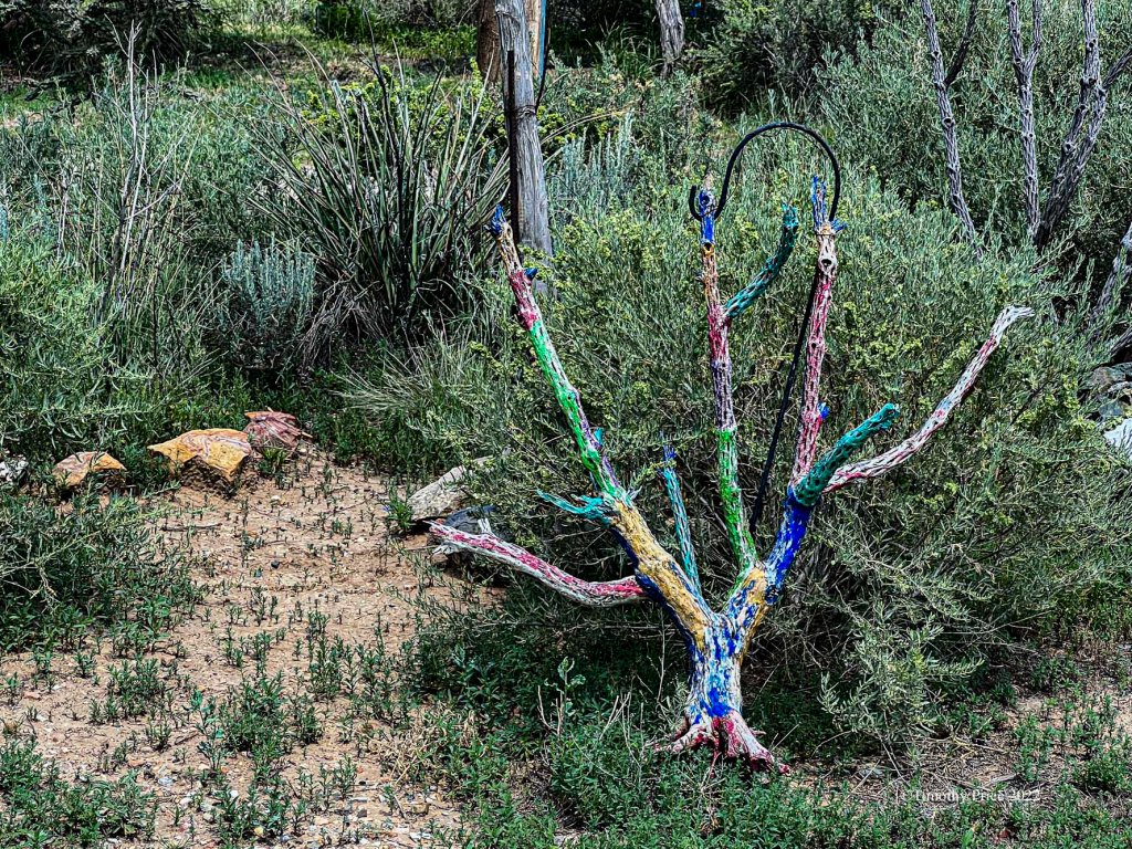 At first, I thought, that colourful tree was yarn-bombed, not painted, but i think, painted coulours were matching better in an area like this.