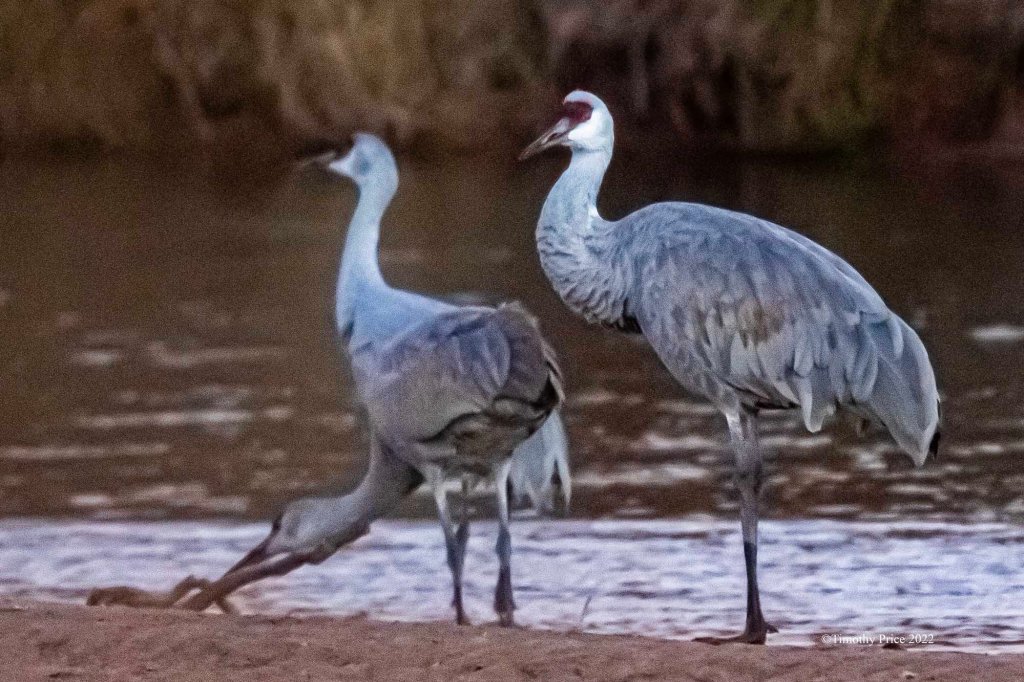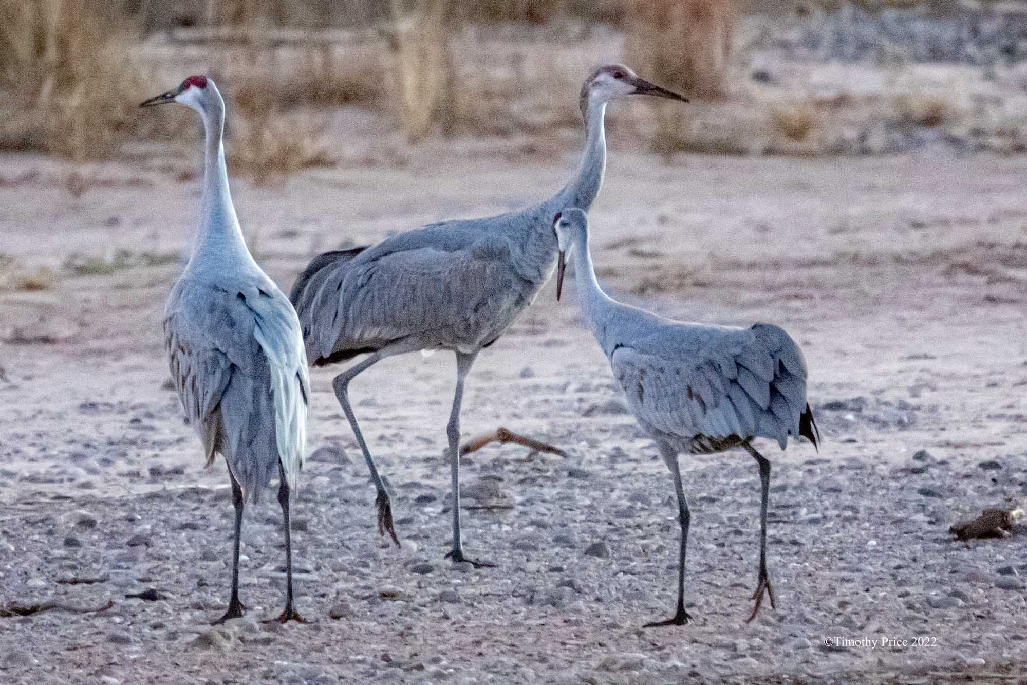 1. Wow, you had quite the flocks on the wing circling your place, Tim. A most impressive image of the cranes with the cliffs in the background. And the groups of three, could these be family groups? The first group shot looks a bit like the bird to the right may be a immature one, or do only males have the bright red?