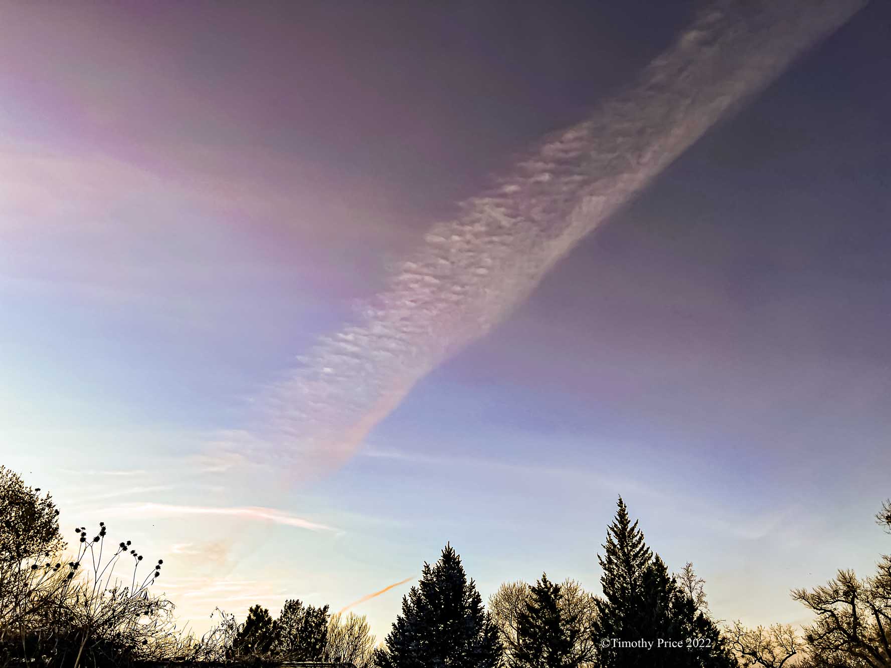 Moon, clouds, contrails, and Tangle Heart Tree