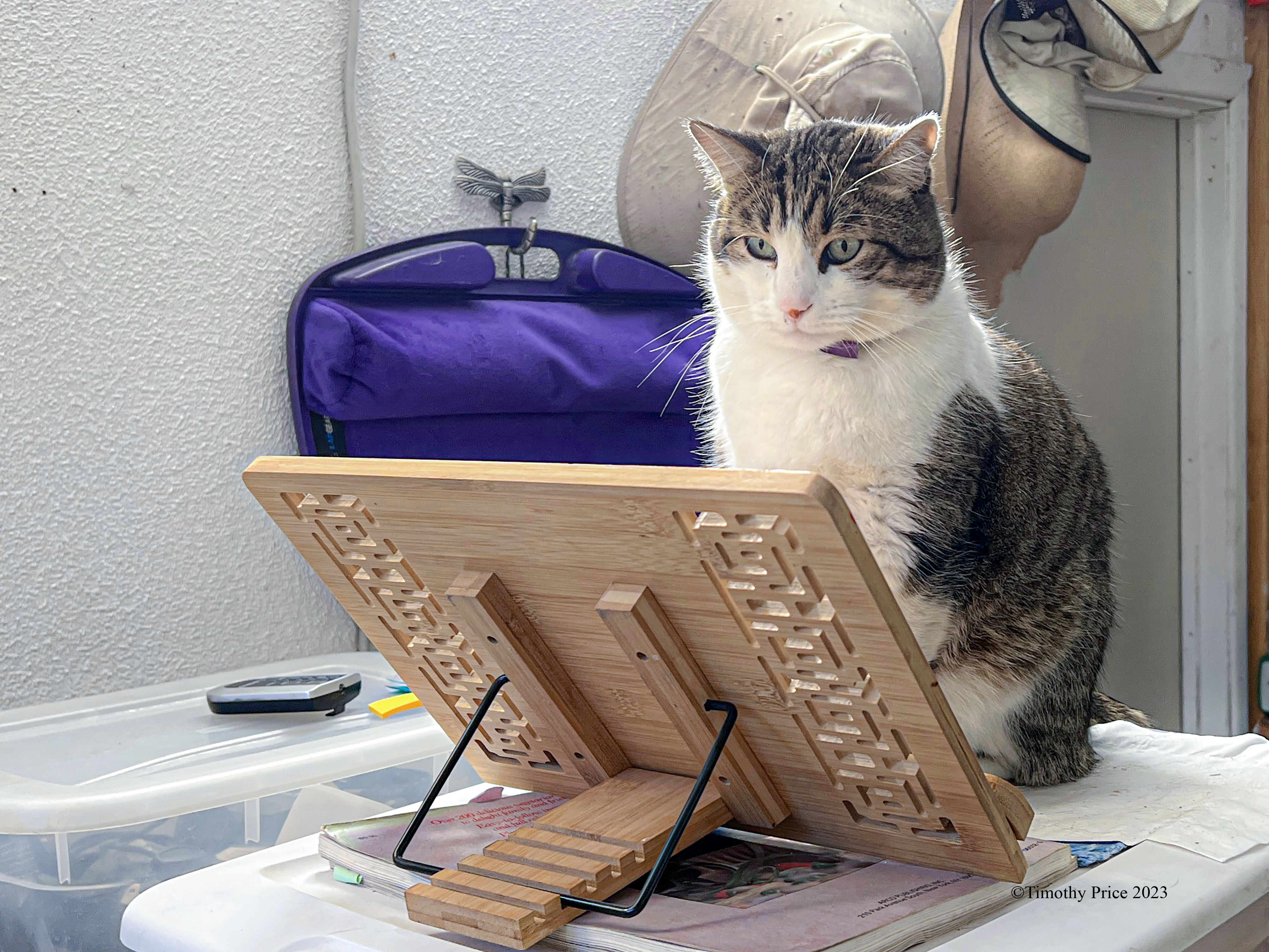 Spunk helping Laurie with her Chaucer research by reading the Caterbury Tails written by Chaucer’s cat Argos.