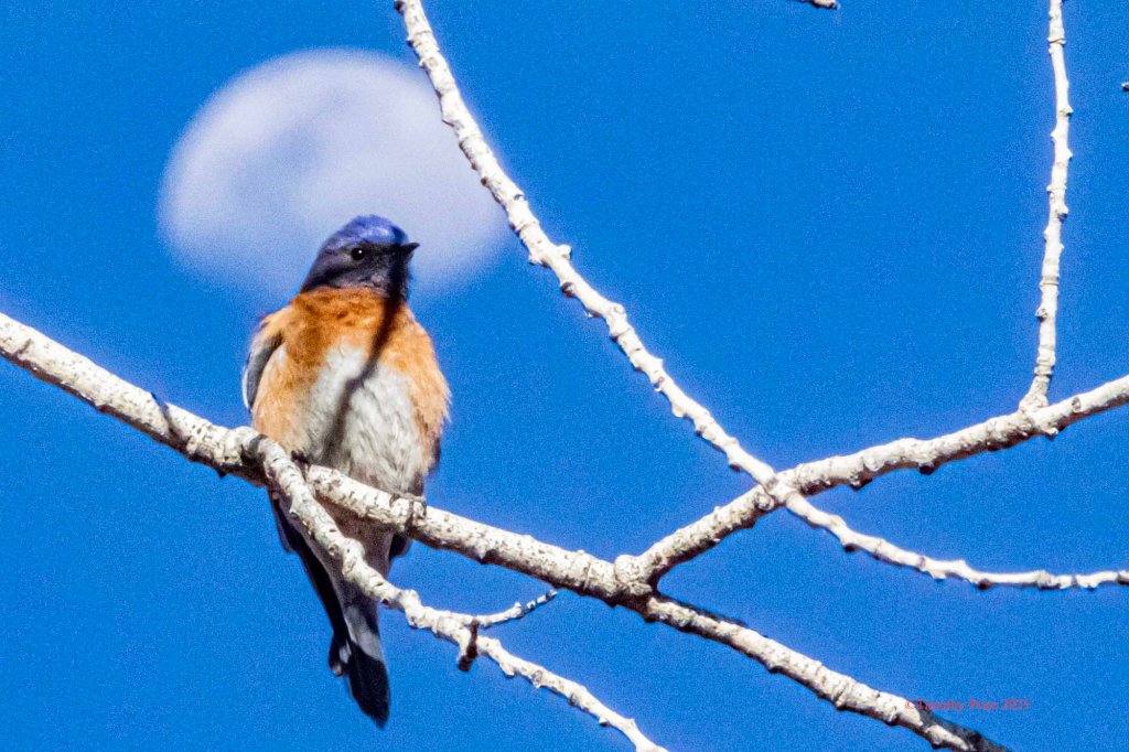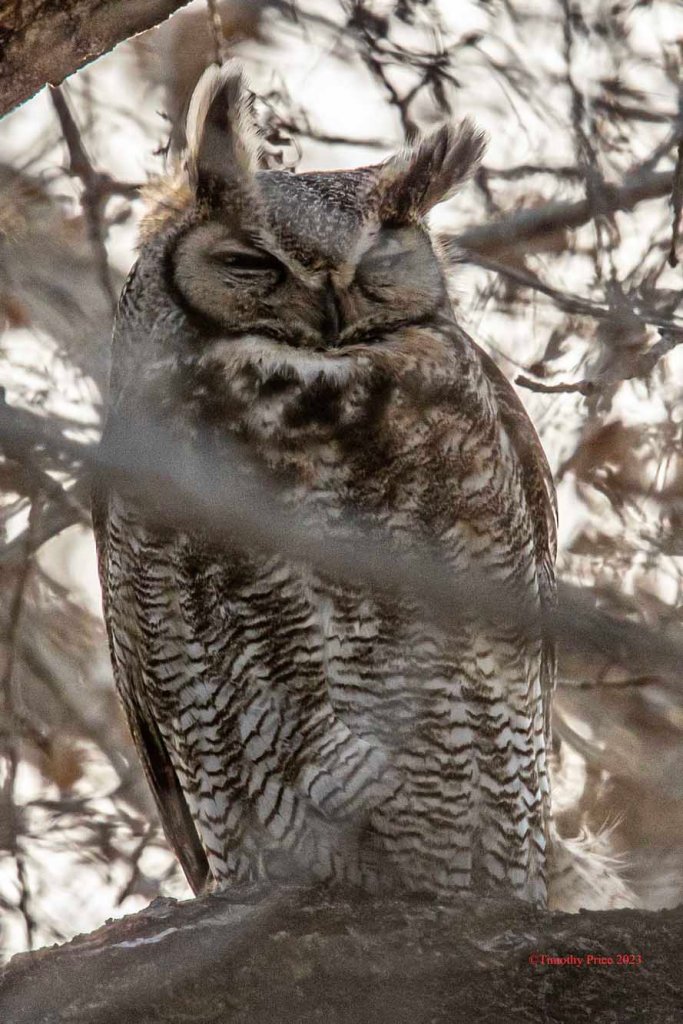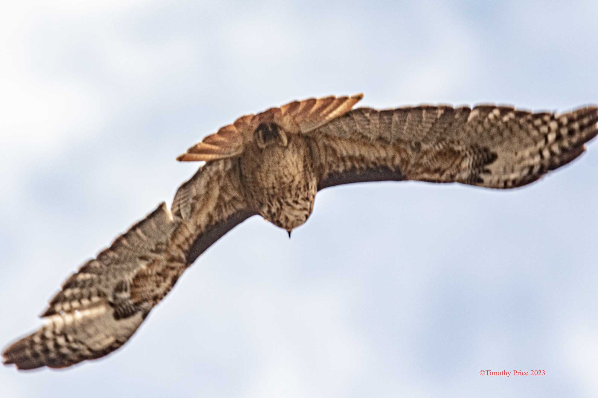 Rodney Redtail (I’m assuming this is a male) has been hanging out in Susan’s tree occasionally, perched above where I hung the nest for the owls. I’m hoping that maybe Roberta Redtail is nesting in the owl’s nest. I won’t climb up there and see if she’s in there. But I can hope she is. Rodney had a stick or something in his beak.