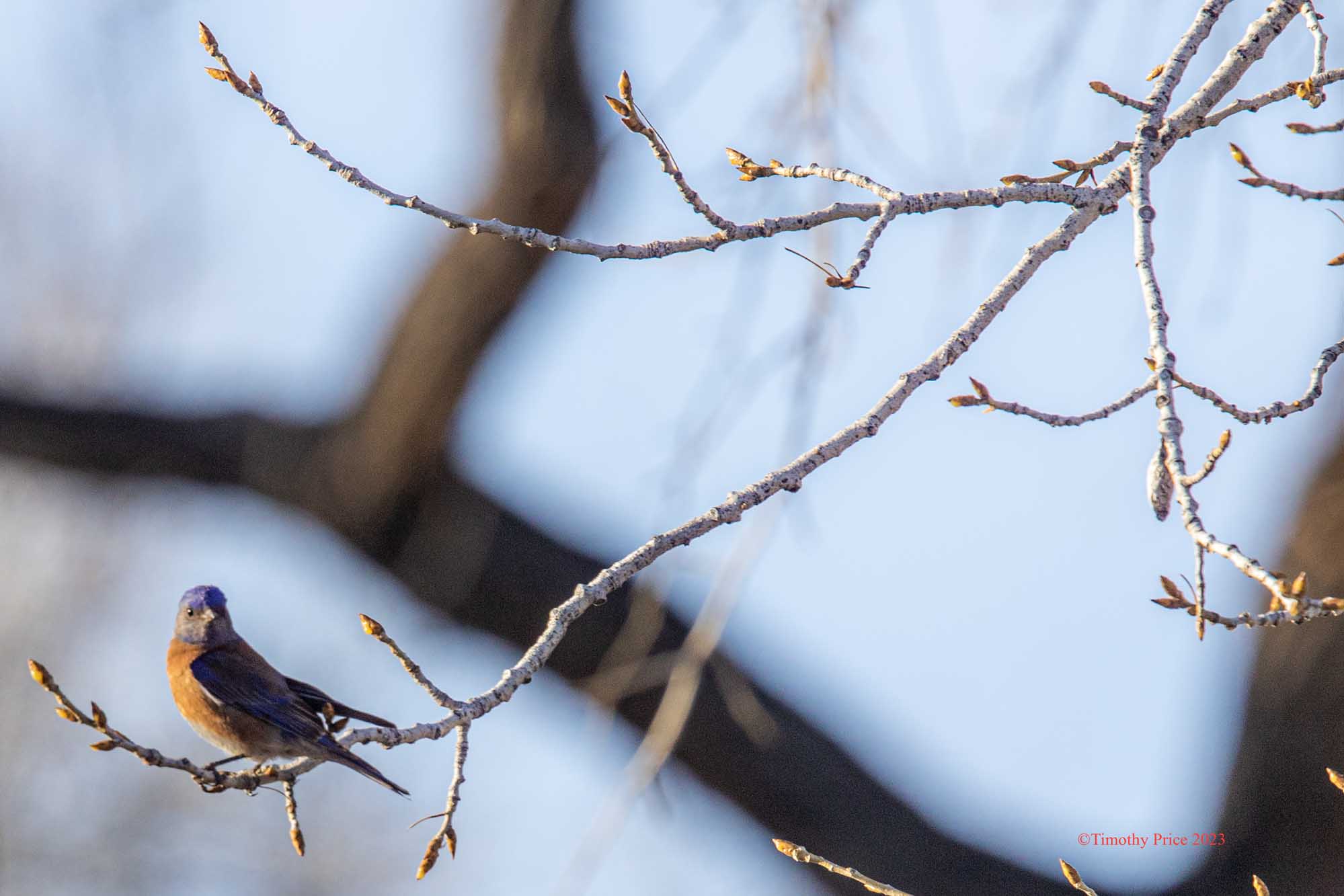 The Western Bluebirds are still hanging around Resa’s Tree. I assume they have a nest there, but I haven’t found it.