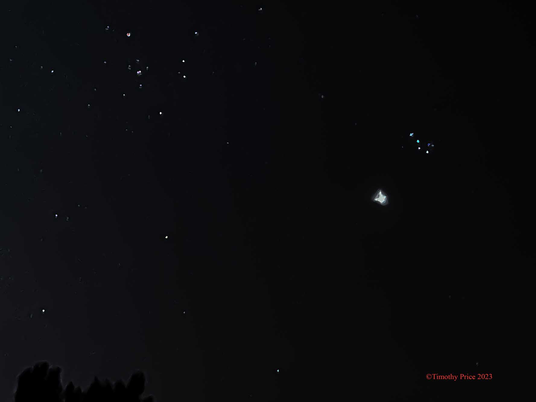 Venus looked orb-like shining through the thin cloud cover, with The Pleiades managing to shine through the clouds as well.