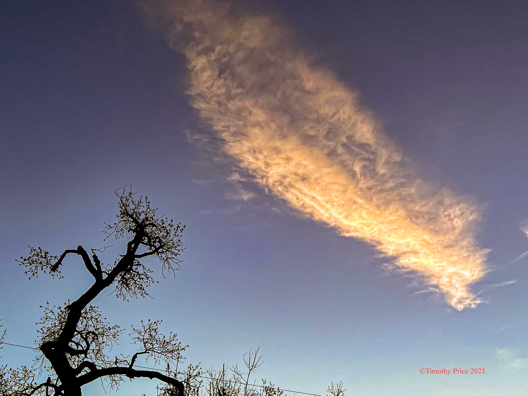 • Clouds can only live in the moment. Especially out here. Trees have moments, good and bad, like when birds land on them, animals play in them, the wind blows through their branches, and when I take a leak on them. Thanks, Dale.