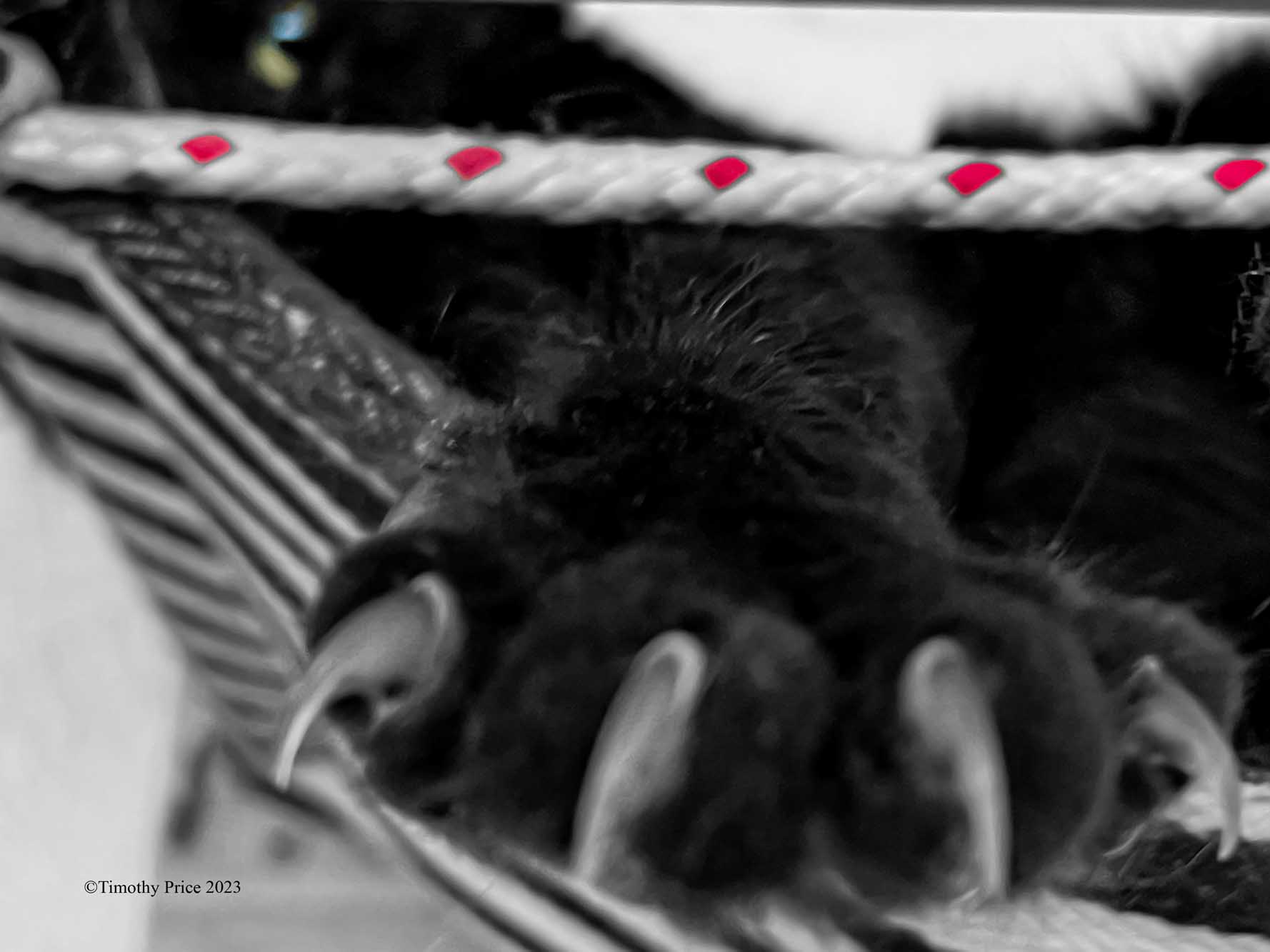 See that, right there one, two, three, four perfect reasons we do not own a kitty! Dogs walk across me in the morning and whack the side of my face to wake up and take them out..no harm, no pain, just a bit startled when coming out of deep sleep. If a cat does that you are calling a blood bank for a withdrawal. Didn’t Hemingway have kitties with SIX toes … shudder.