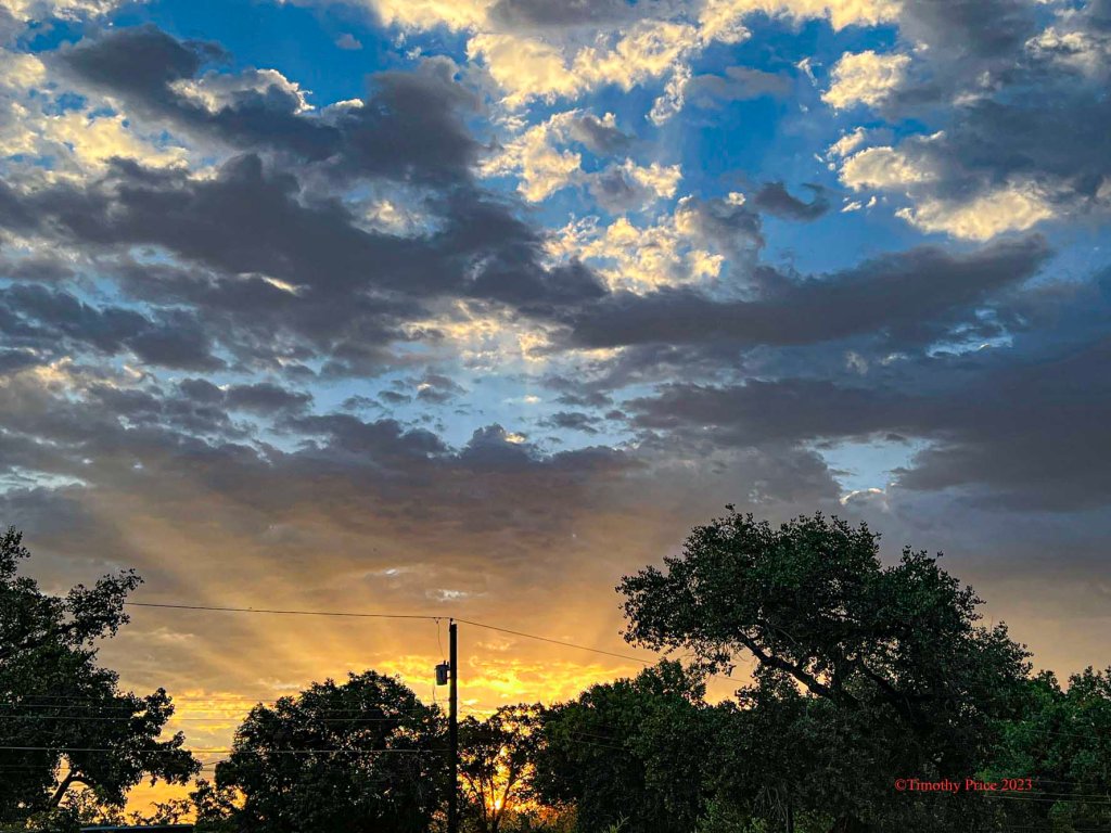 Sunrise looking south. The clouds were mimicking Marina’s Incognito Pear Tree.
