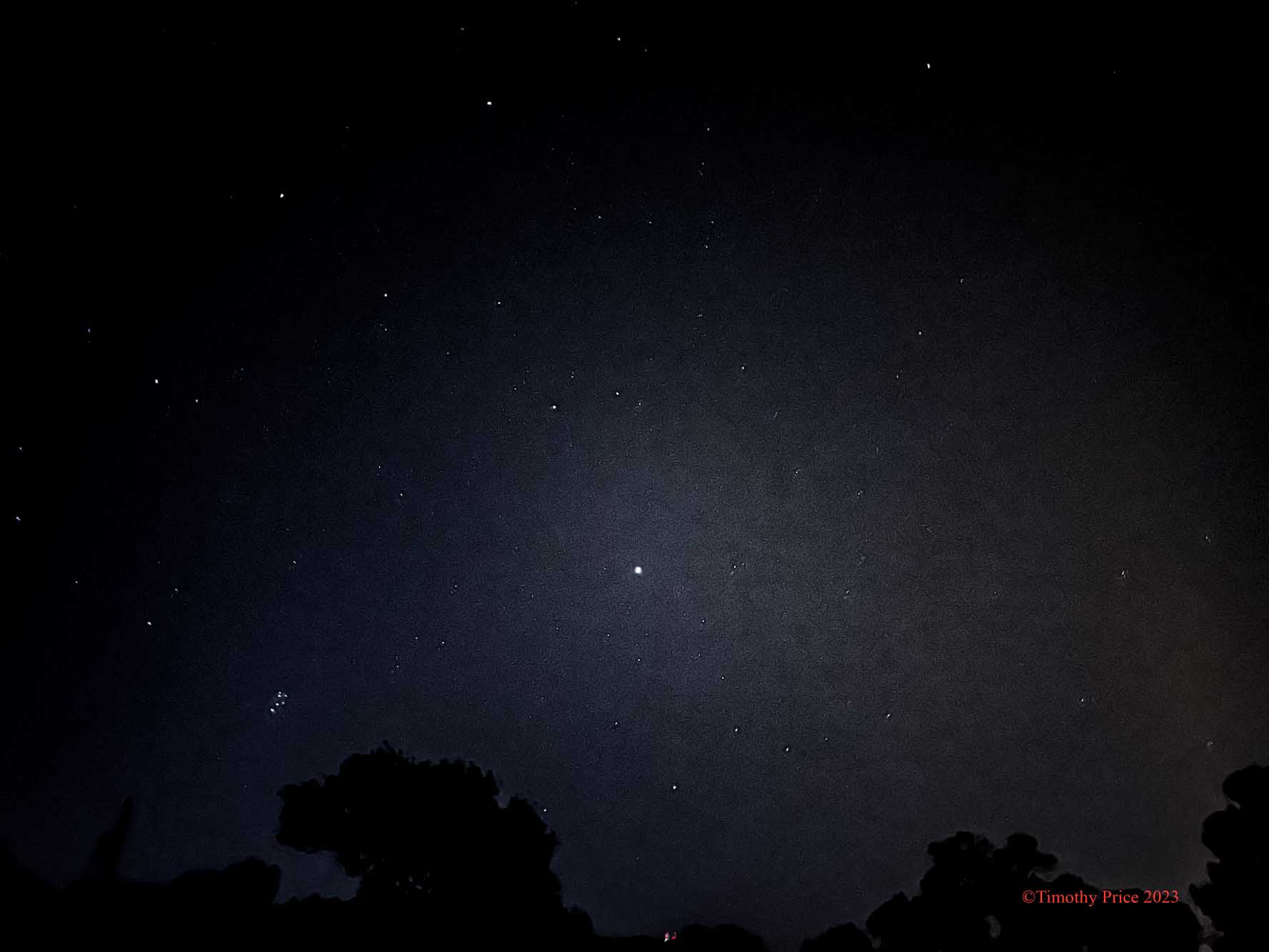 4:30 this morning, looking east. The Pleiades is on the left. Jupiter is in the center.