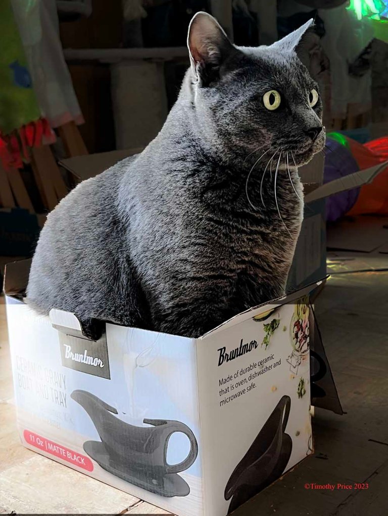 Happiness is an empty box. My cat won’t go in them. My daughter’s cat won’t go in them either. I just gave Emmie a beautiful box and she completely ignored it…again. So she’s just not into them. Maybe because she was a stray for so long, or maybe she just doesn’t the the “box gene.” Who can say. Beautiful photo of your sweet kitty.