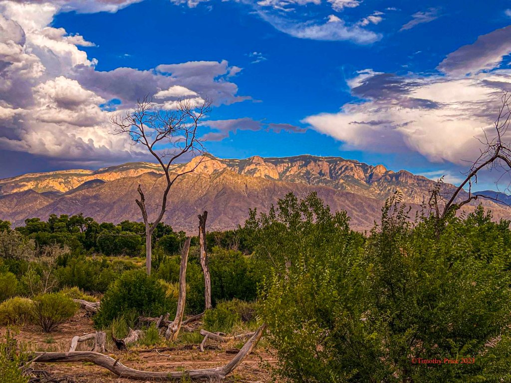 Storms facing off over the Sandias.
