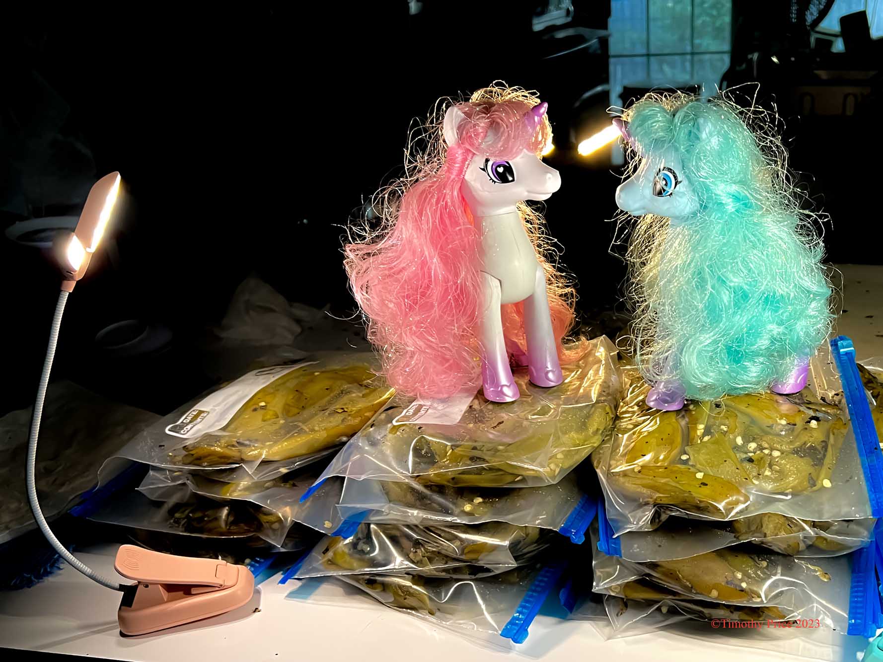 Those are the very same infamous MLPs from stupid Santa. They love having fun and getting a bit of attention now and then. They look hot on green chiles — they like anything that makes them hotter. Thanks, JYP.