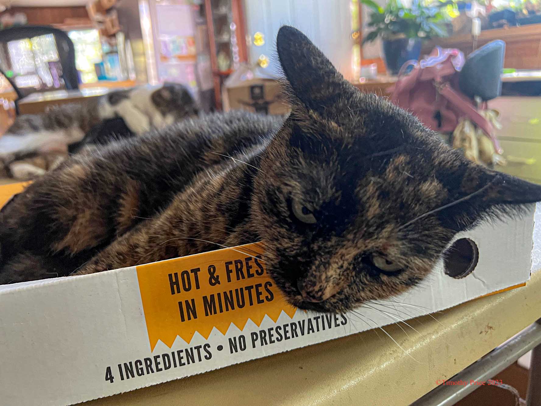 Loki started celebrating Equinox with a bit of catermortis. Silver and Glenda are in the background.