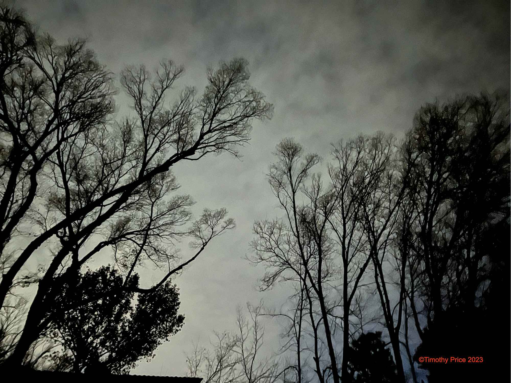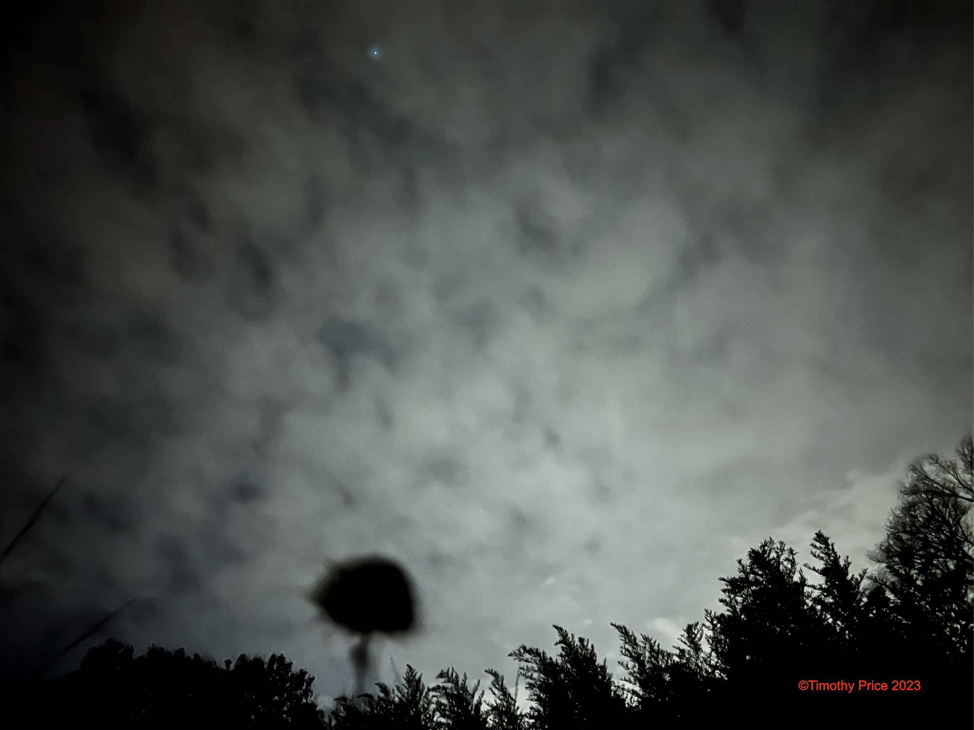 Jupiter shining through the clouds last night. I have no idea what the alien mushroom is.