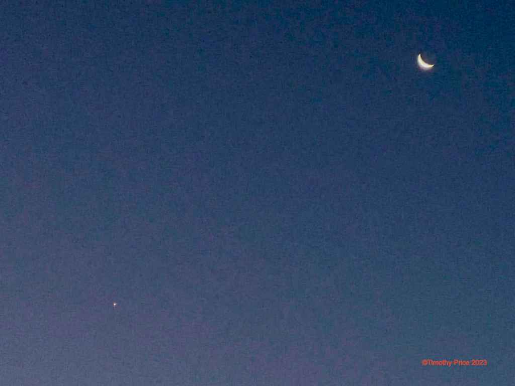 • Thanks, Shey. Venus and the moon and I got up at the same time this morning. I was like a frosted flake outside in my skivvies taking photos of Venus and the moon at 04:30. The temperature was a toasty -5ºC.