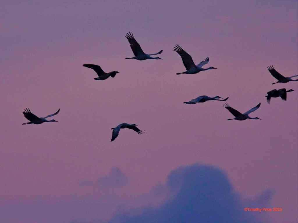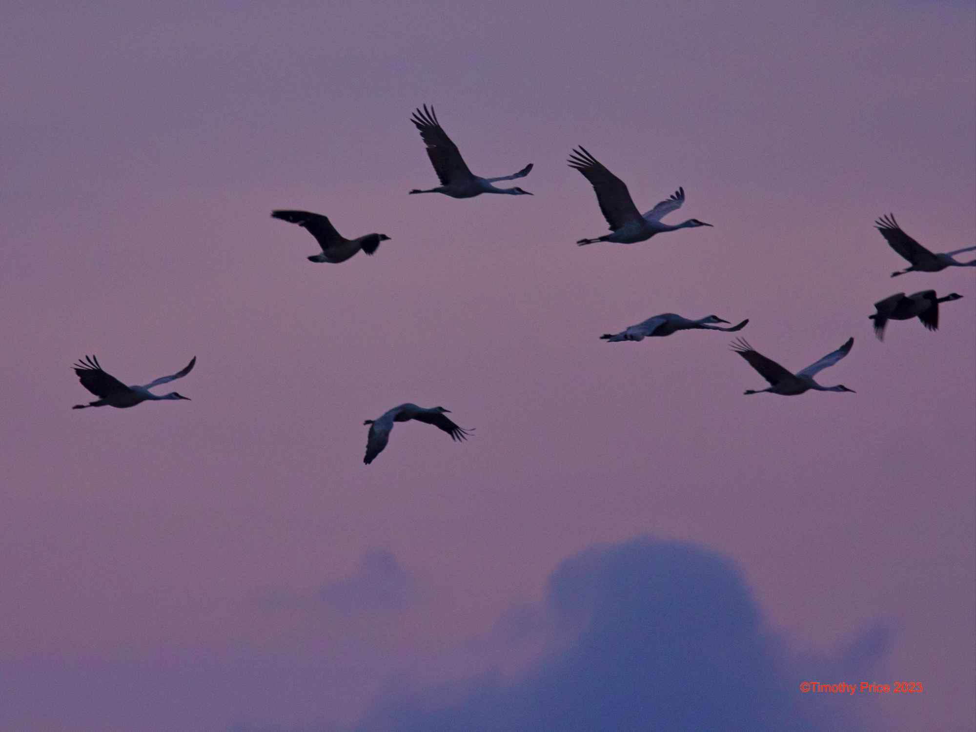 1. Nice sky photos Tim. I didn’t realize how large those cranes really are until I compared them to the Canada Geese in the one photo. I enjoyed the squadron of cranes flying by.