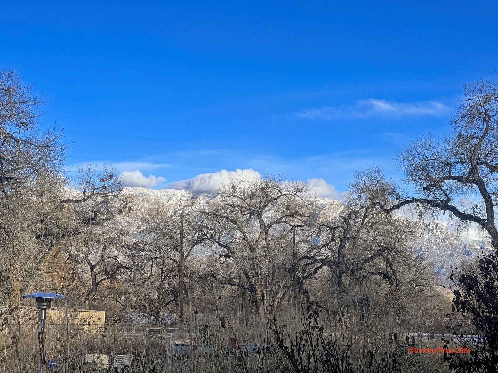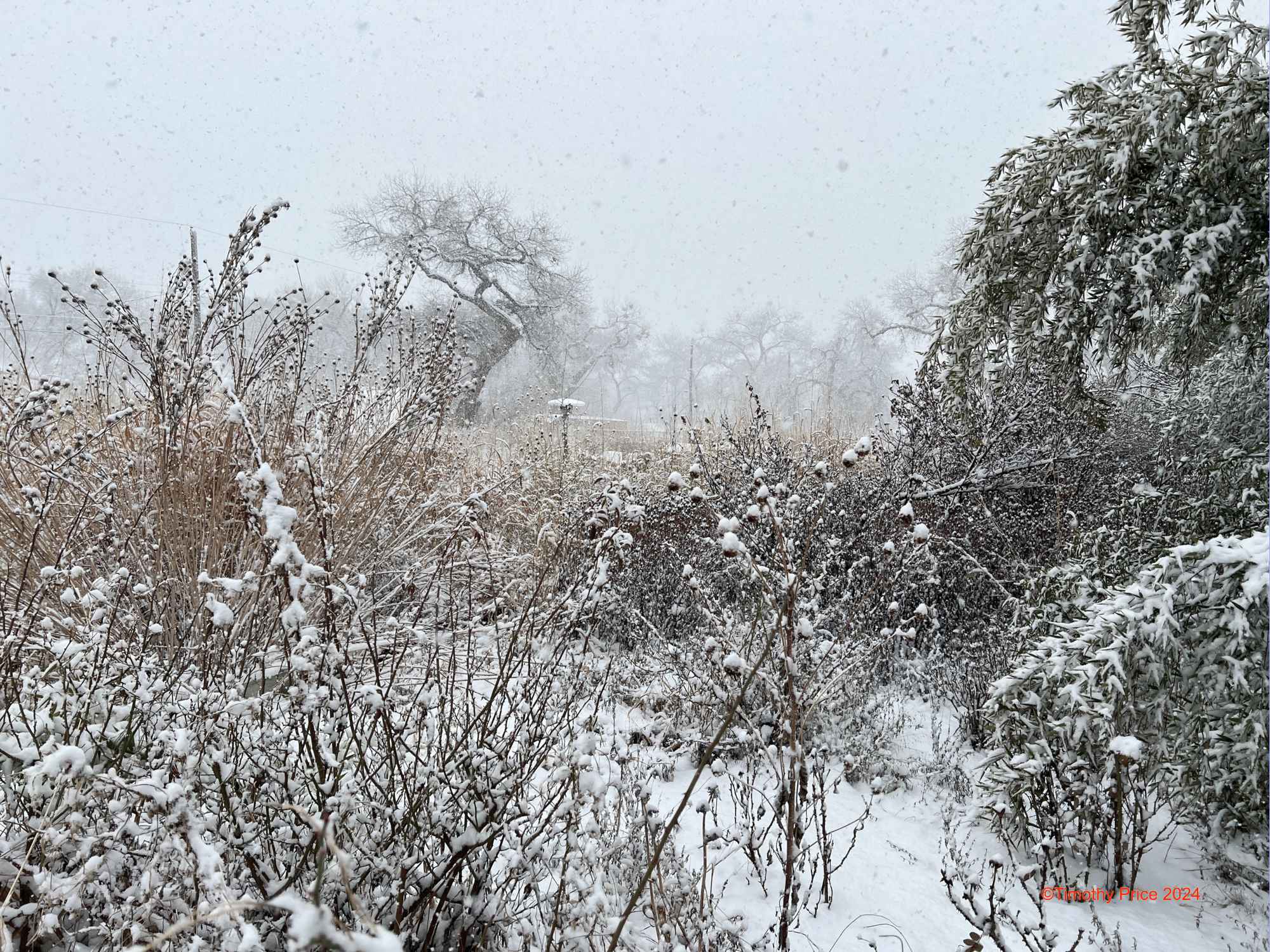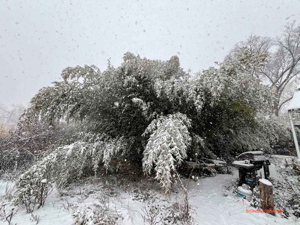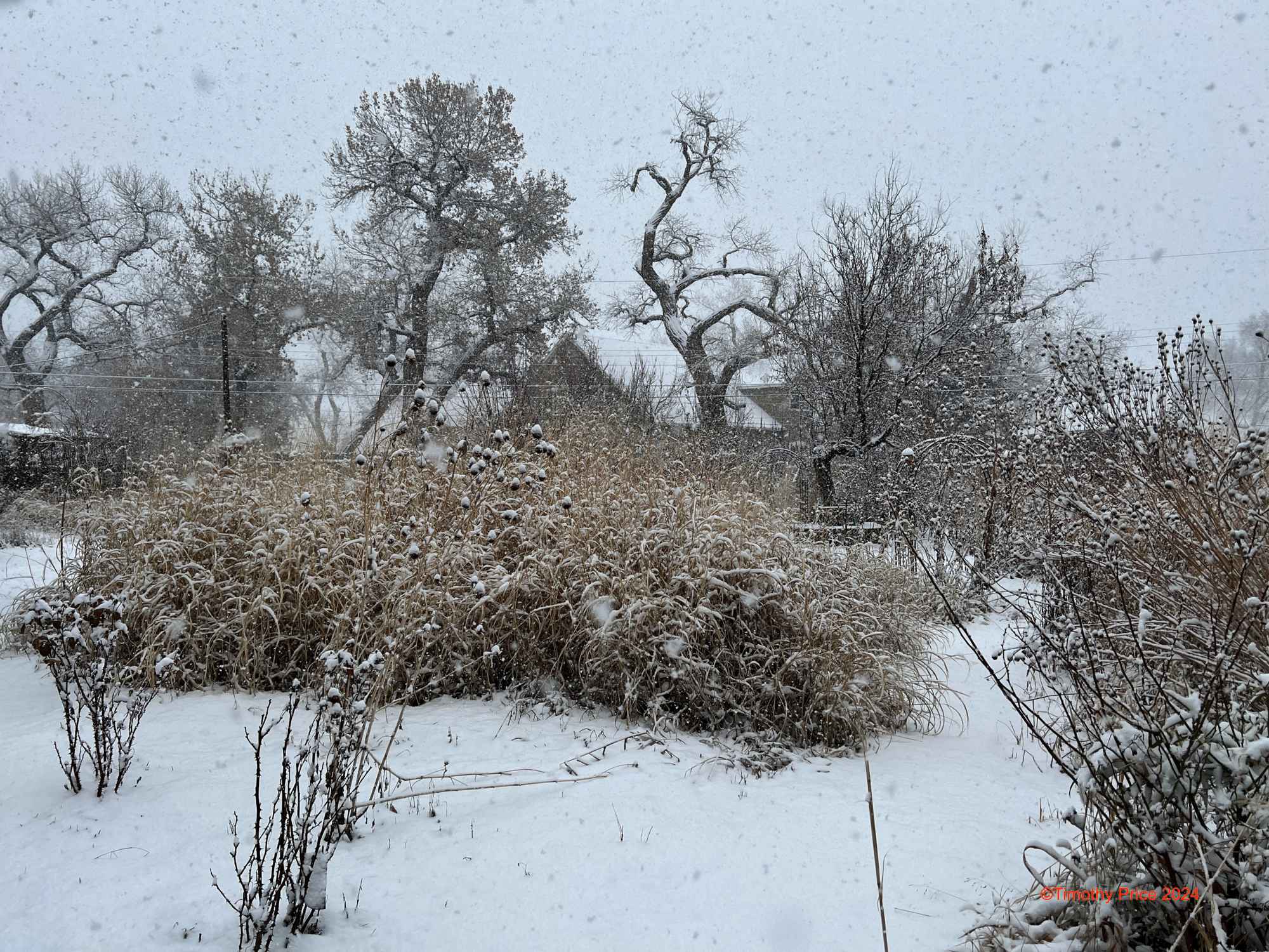Clouds / Cold / Corrales / Cottonwoods / Sandias / Snow / Sunset / Trees A Little Snow February 10, 2024 Timothy Price41 Comments 9:52 AM The snow started falling around 9:30 AM this morning. 9:51 AM and 4:30 PM Black bamboo bowing with snow. 9:51 AM and 4:30 PM Setting sun. Share this: Click to share on X (Opens in new window) X Click to share on Facebook (Opens in new window) Facebook Like Loading...