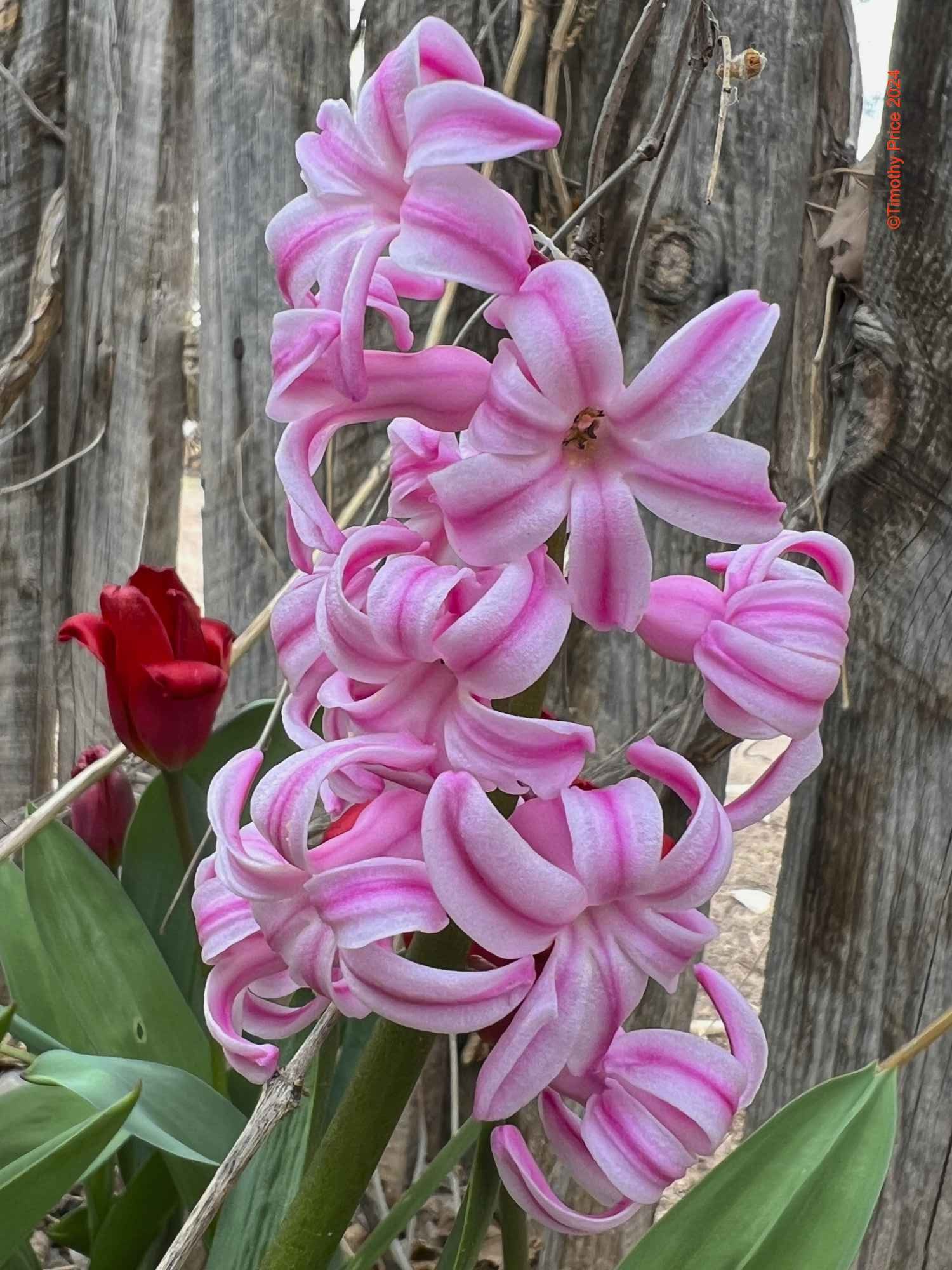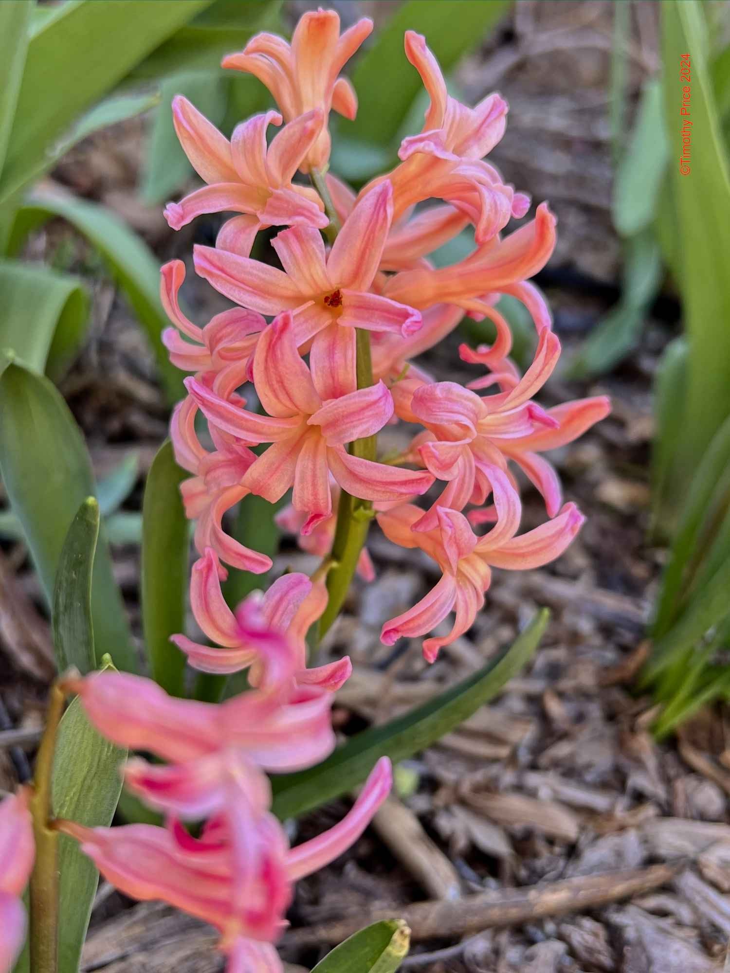 Resa’s Tree in the background. Dale’s Peach Tree blooming in the middle. Charlotte’s Plum Tree blooming on the right.