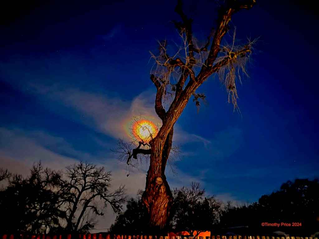 Almost Worm Moon setting at dawn. The full moon is tonight, but it’s blocked by clouds at the moment.