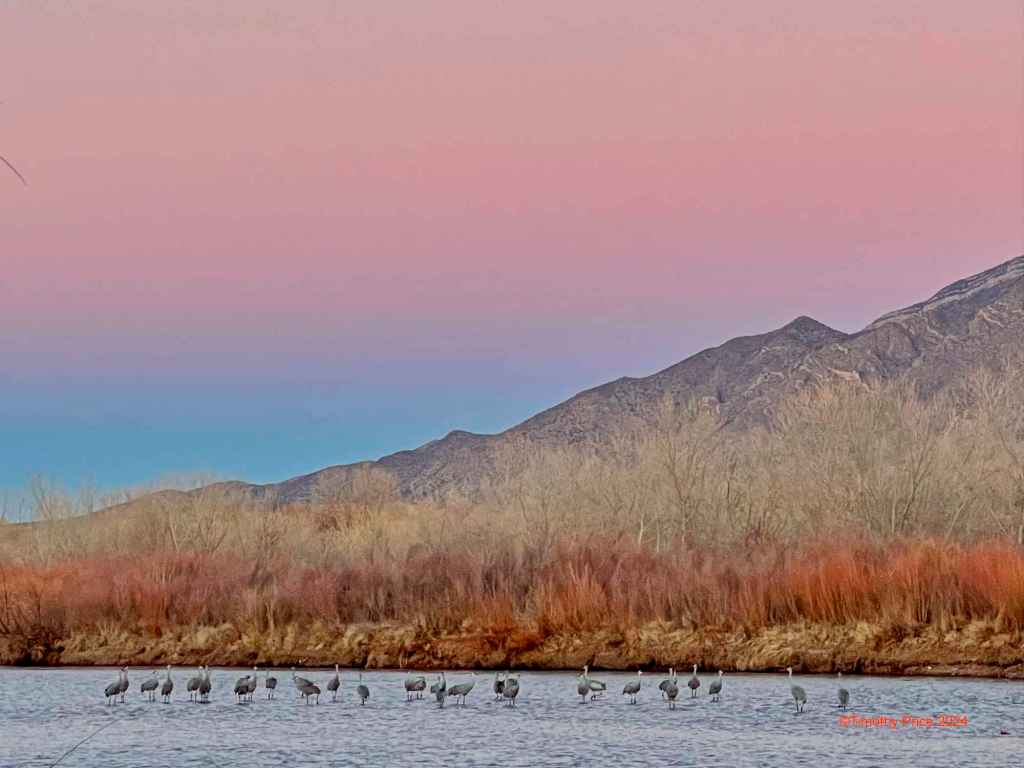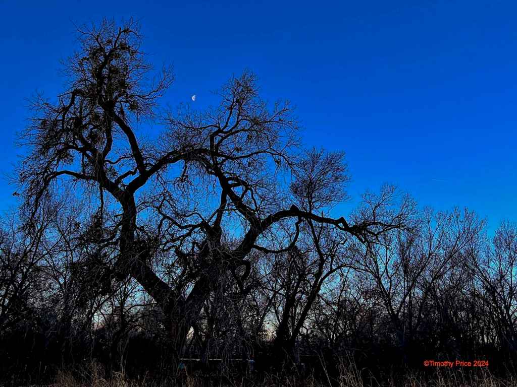 Abstract / Animals / Birds / Bosque / Corrales / Cottonwoods / cranes / Ducks / Moon / Rio Grande / Sandhill Cranes / Sandias / Sunset / Trees Walk This Way March 2, 2024 Timothy Price36 Comments Half moon in Susan’s Tree at dawn. Fewer cranes tonight and more teenage-sized cranes. “Okay, Kidz! Walk this way!” Things were ducky at sunset. Share this: Click to share on X (Opens in new window) X Click to share on Facebook (Opens in new window) Facebook Like Loading...