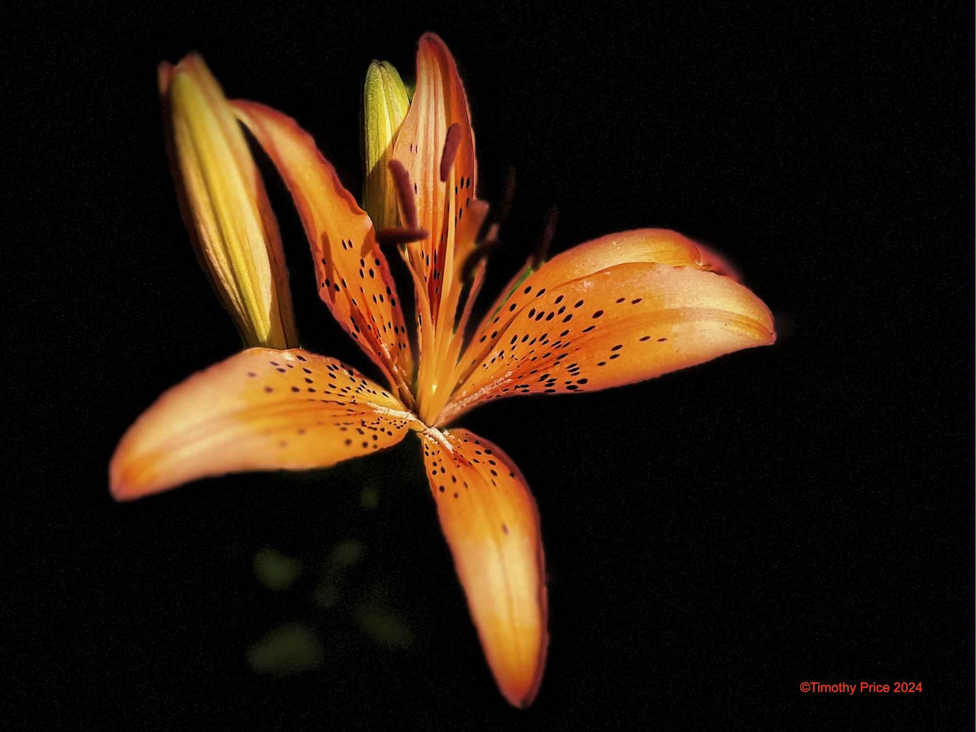 That is a nice evening cap of clouds over the Sandias, and I love the lily composition with the dark background. What does your neighbor grow? He is smart, waiting for evening to plow. Reply