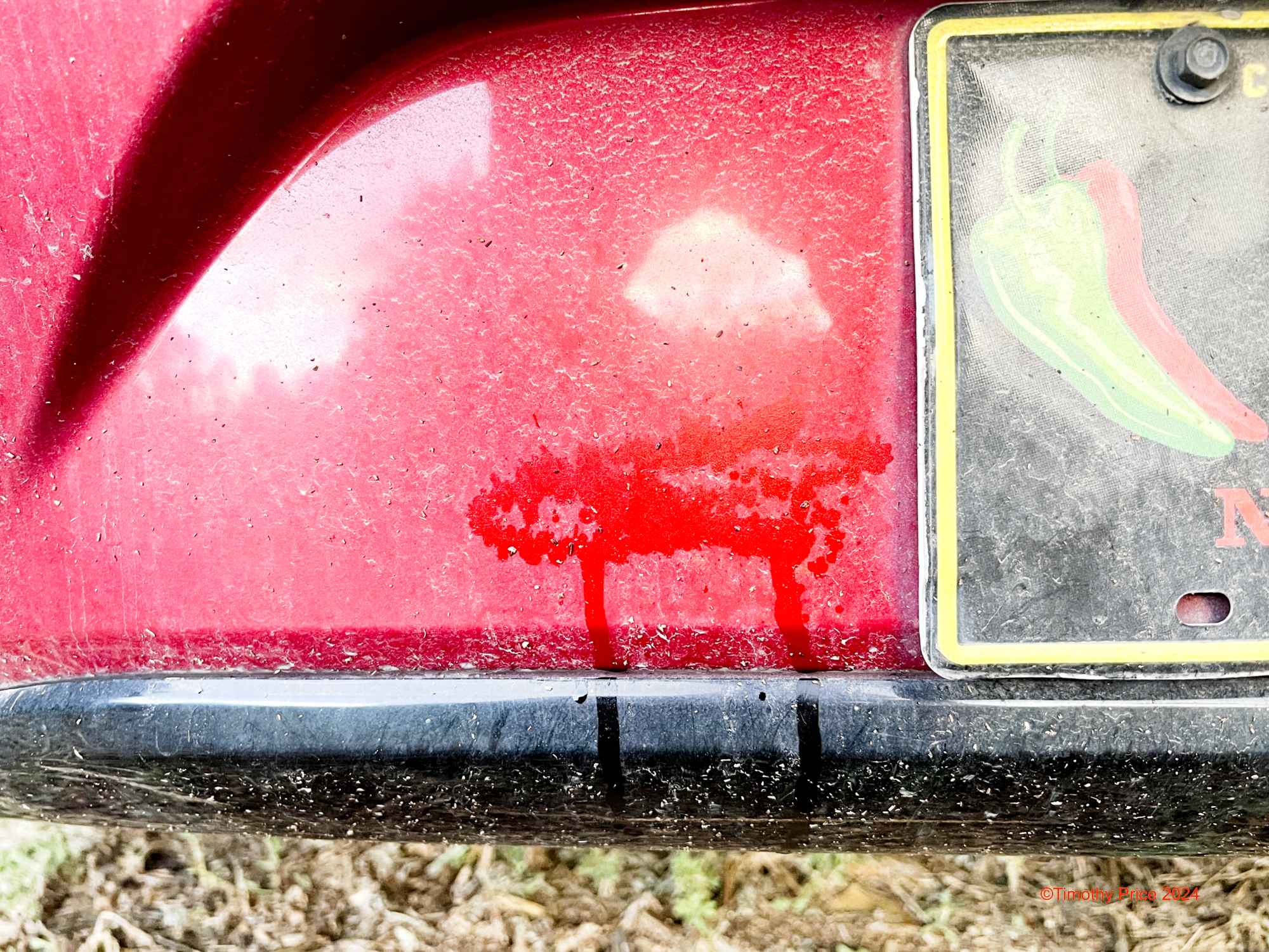 Love the dawn cloud-scape. LOL, Tim, only you would photograph pee on a bumper. 🐱