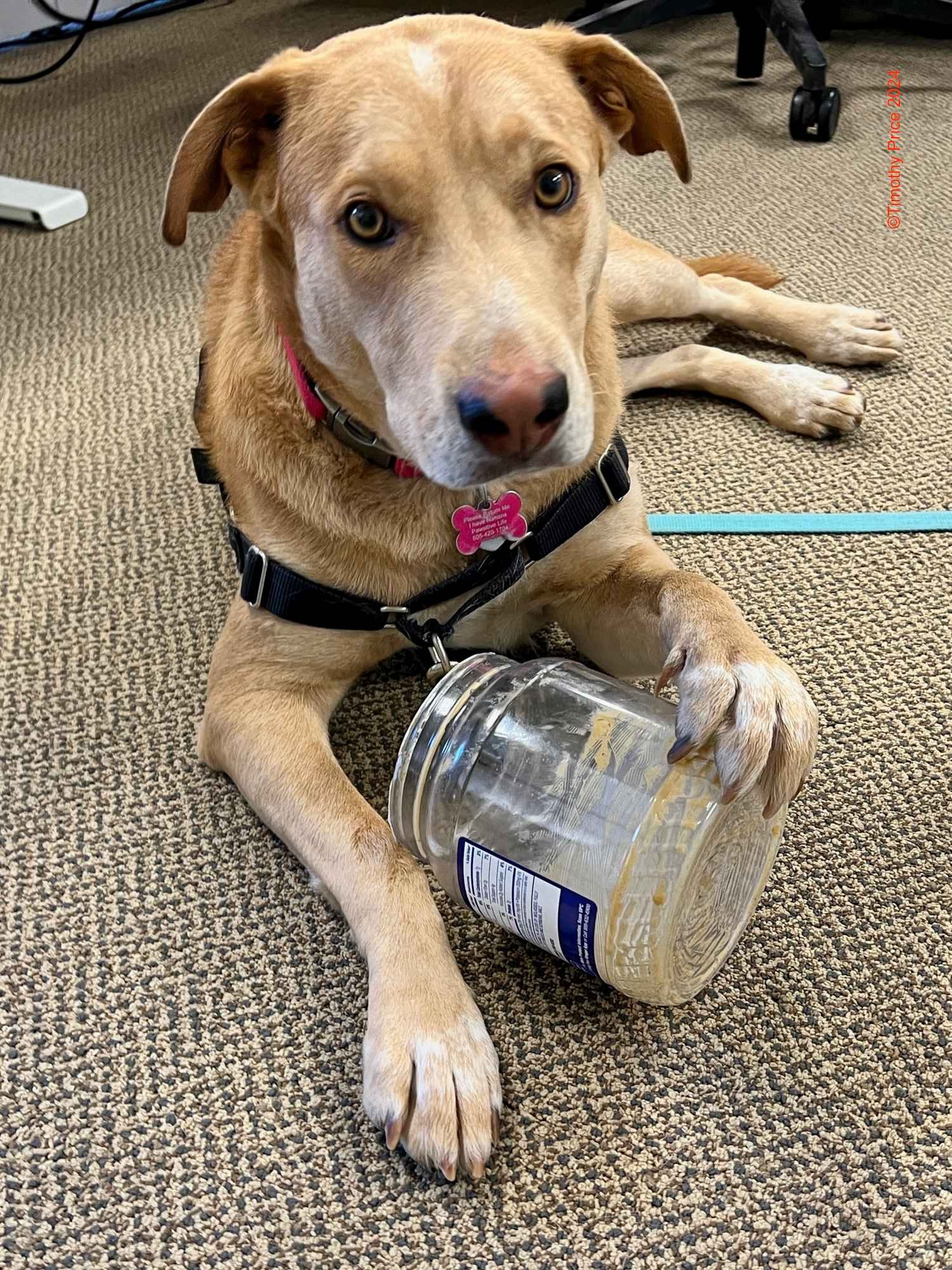 2. Hope you and yours were safe in the deluge, Tim. Almost a guilty puppy look with the peanut butter jar.