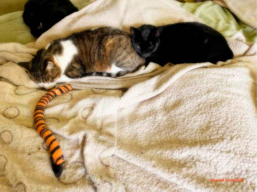 I’ll just let the sleeping cats lie, and slip into your gorgeous sunset over my tree!