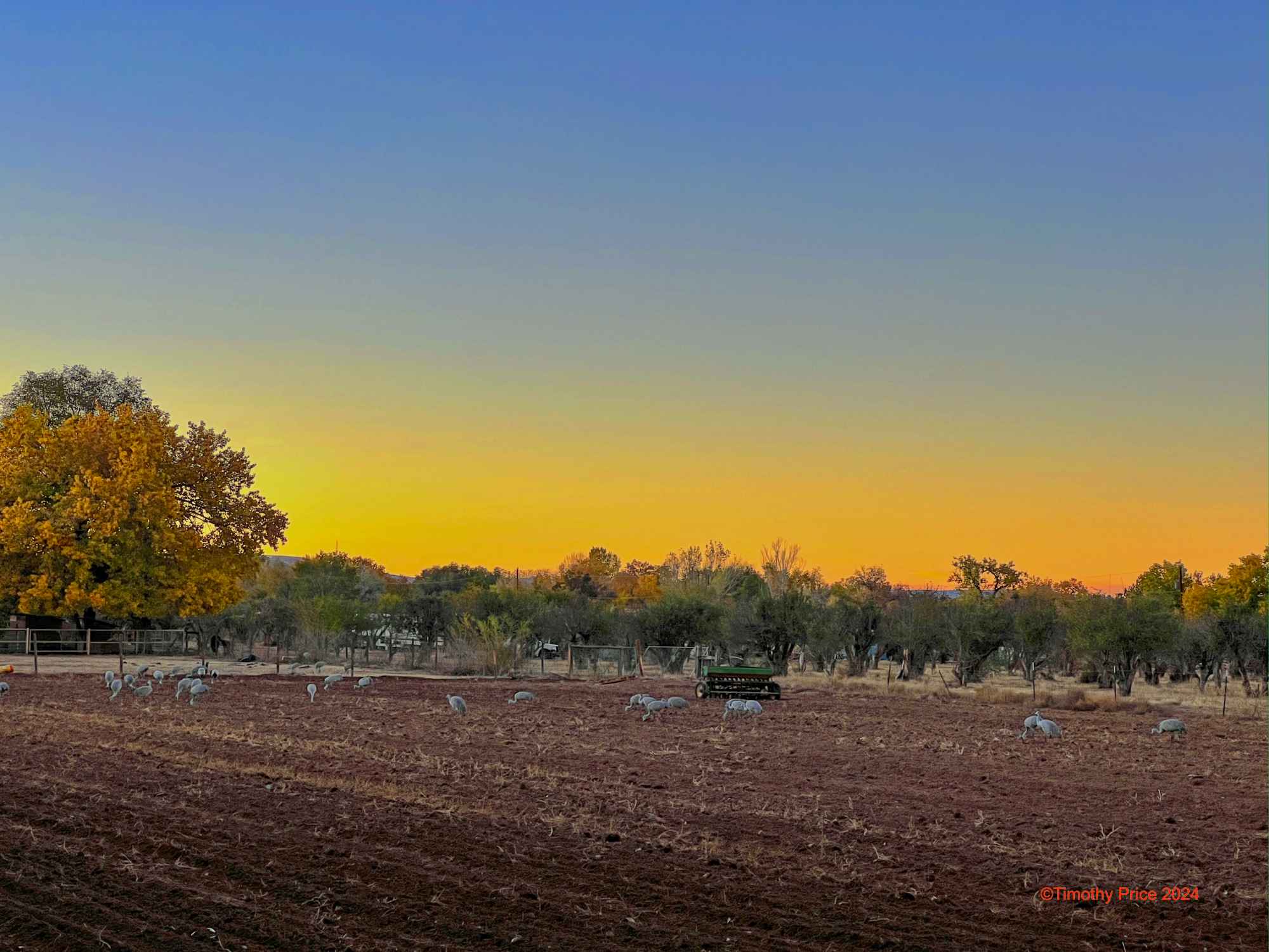 Marina’s Incognito Pear Tree at Sunrise surrounded by Rebeecca’s Black Bamboo.
