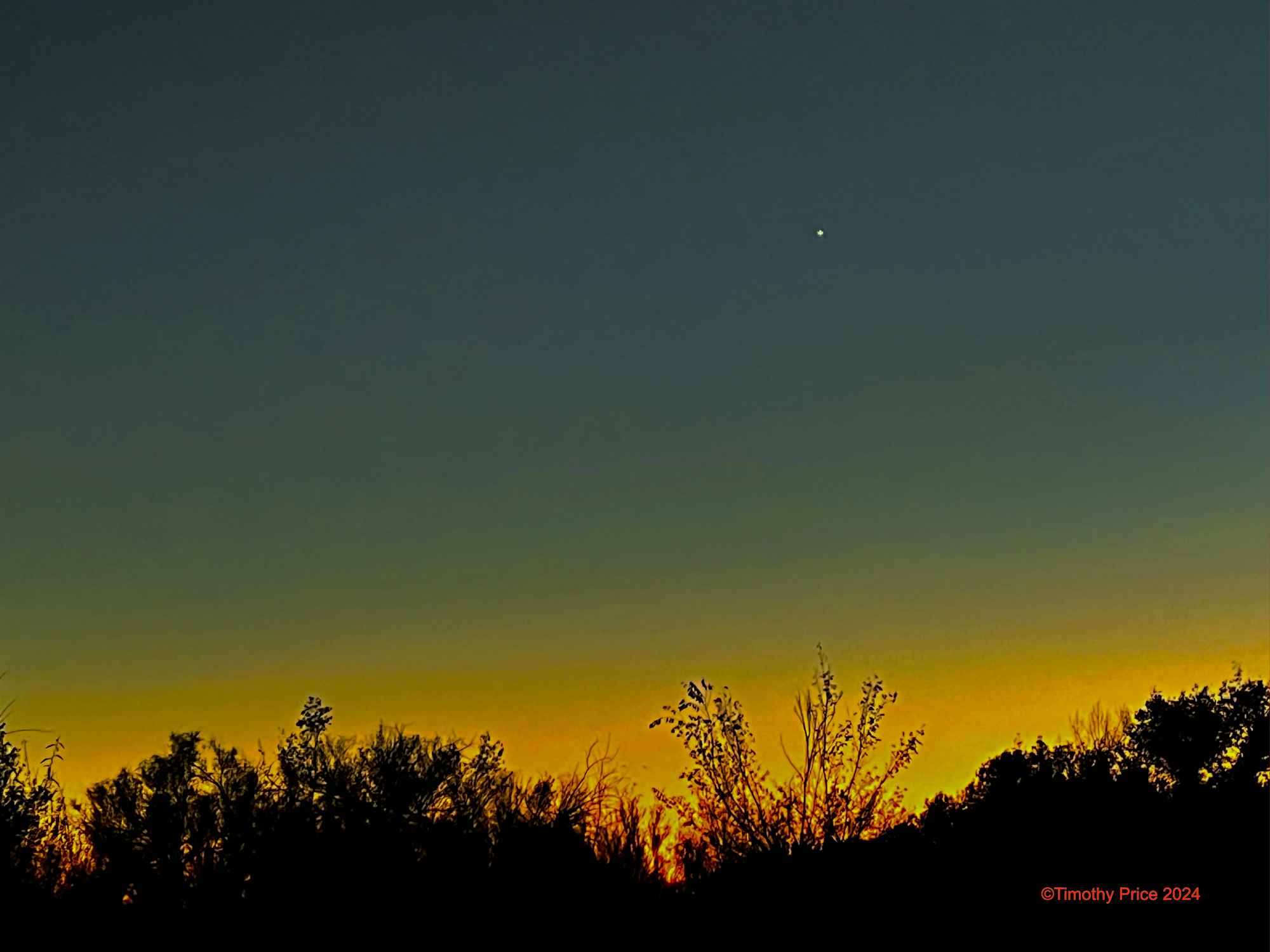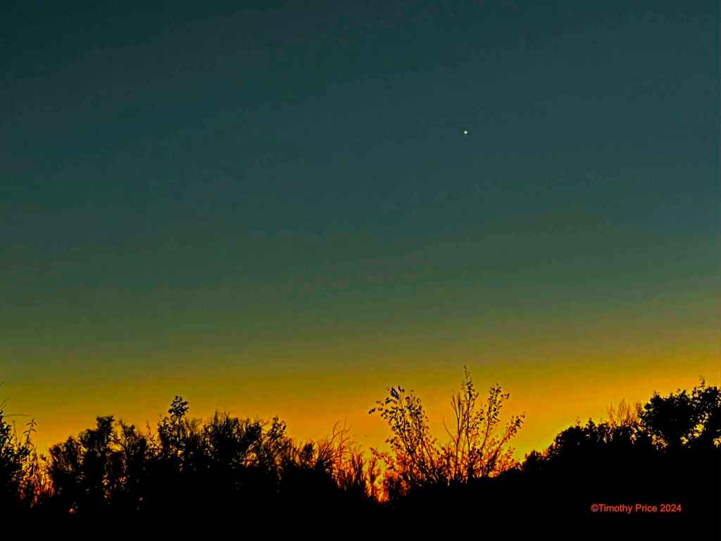 That is a beautiful photo of a post-sundown sky with Venus prominent. Not seeing much up here tonight, rain squalls came through all day and into the evening here. We are supposed to see a little sun tomorrow starting mid-morning. The moon is supposed to be full tomorrow night, and I hope to catch a glimpse of her.