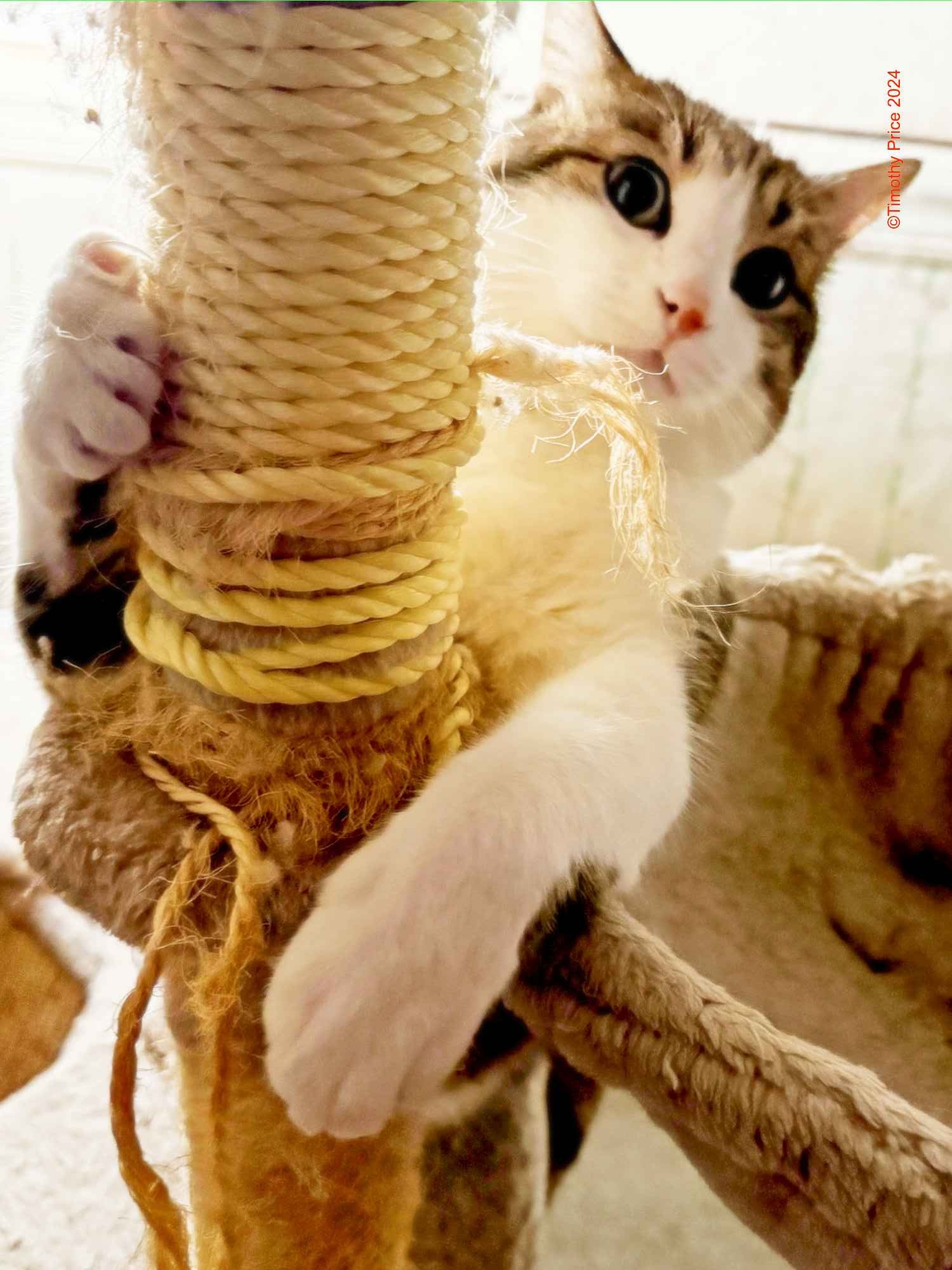 Spunk playing with his tail in his performance art piece called Tell Tale Tail.