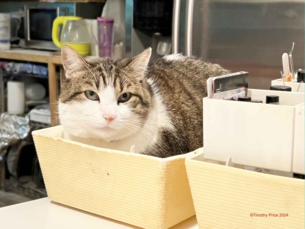 Instead Spunkie-Poo 💋 is all snuggly and cute in a portable sewing machine lid.