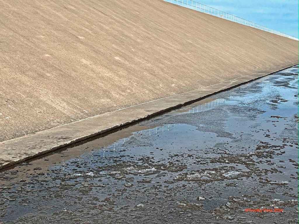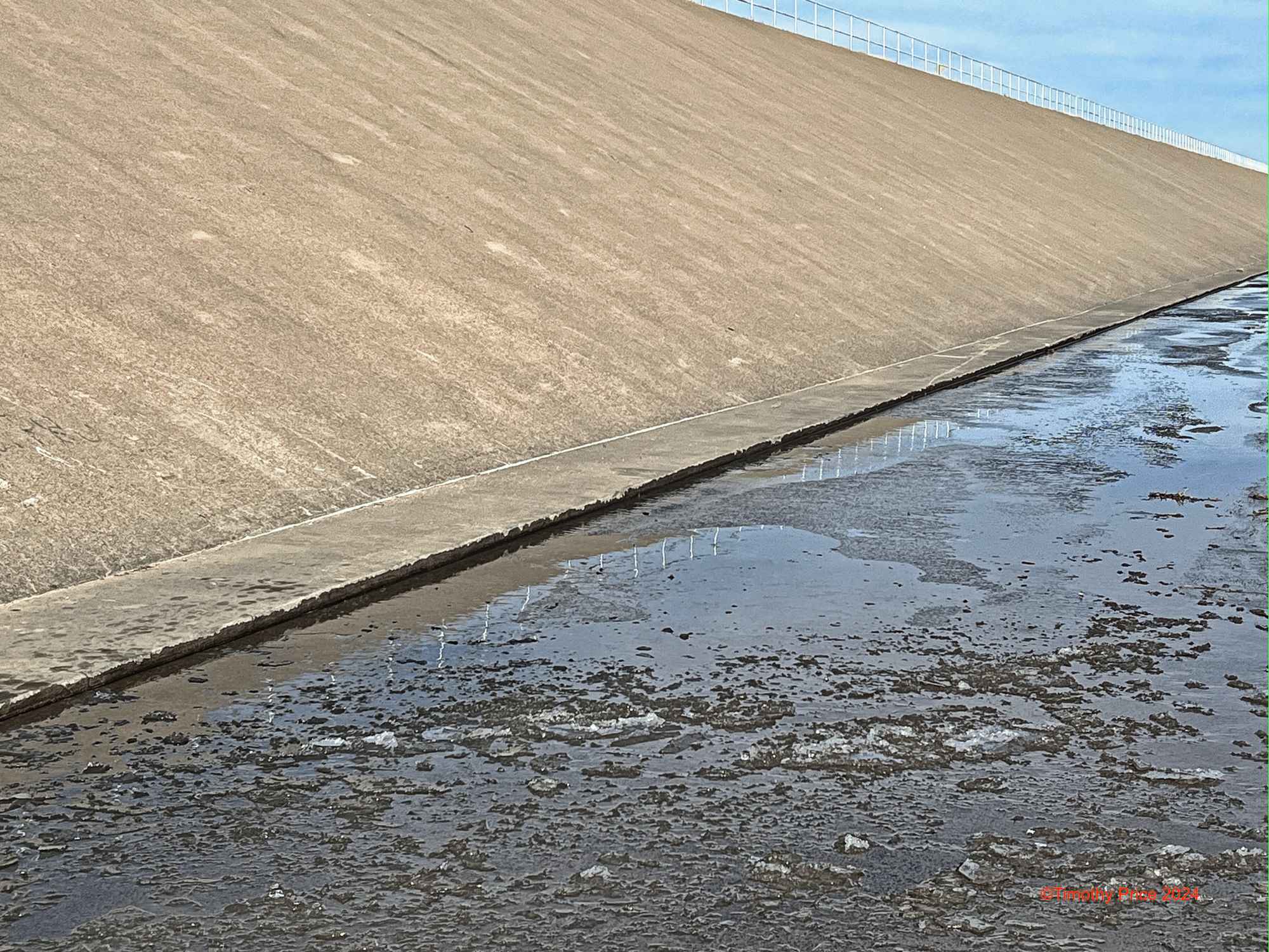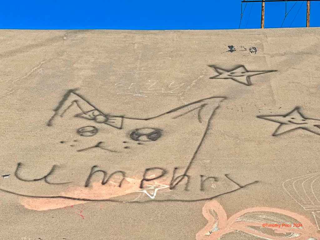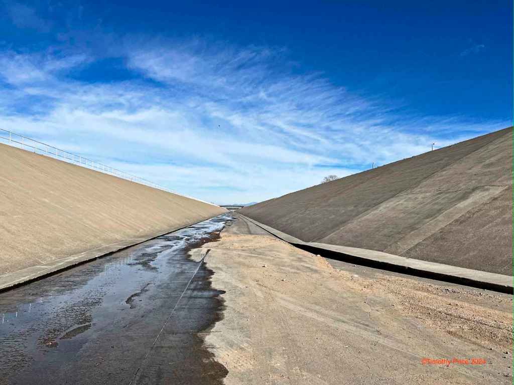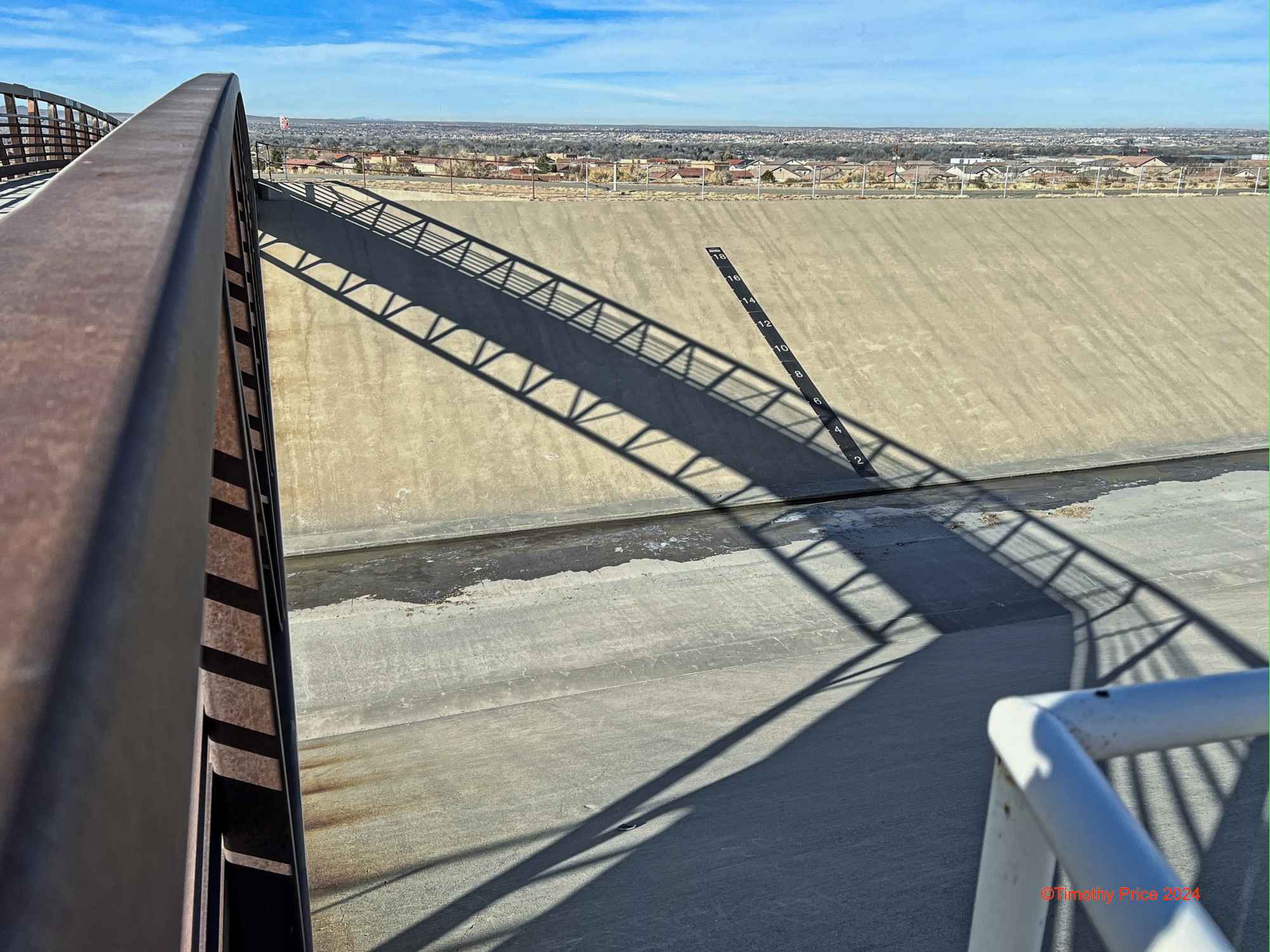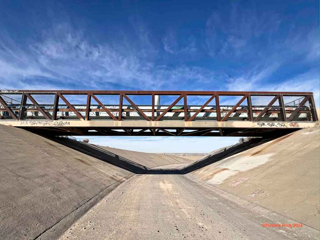 While my car was in the shop for maintenance, Jake and I took a 3.8-mile (6.1 Km) walk down, up, and all around the Albuquerque flood diversion channel. I was surprised how much Jake liked running down and up the steep sides of the flood control channels. Whenever we came up to the top of a channel, Jake would hop onto the road and give whatever was in front of us a look of intense interest. It was like a game for Jake.