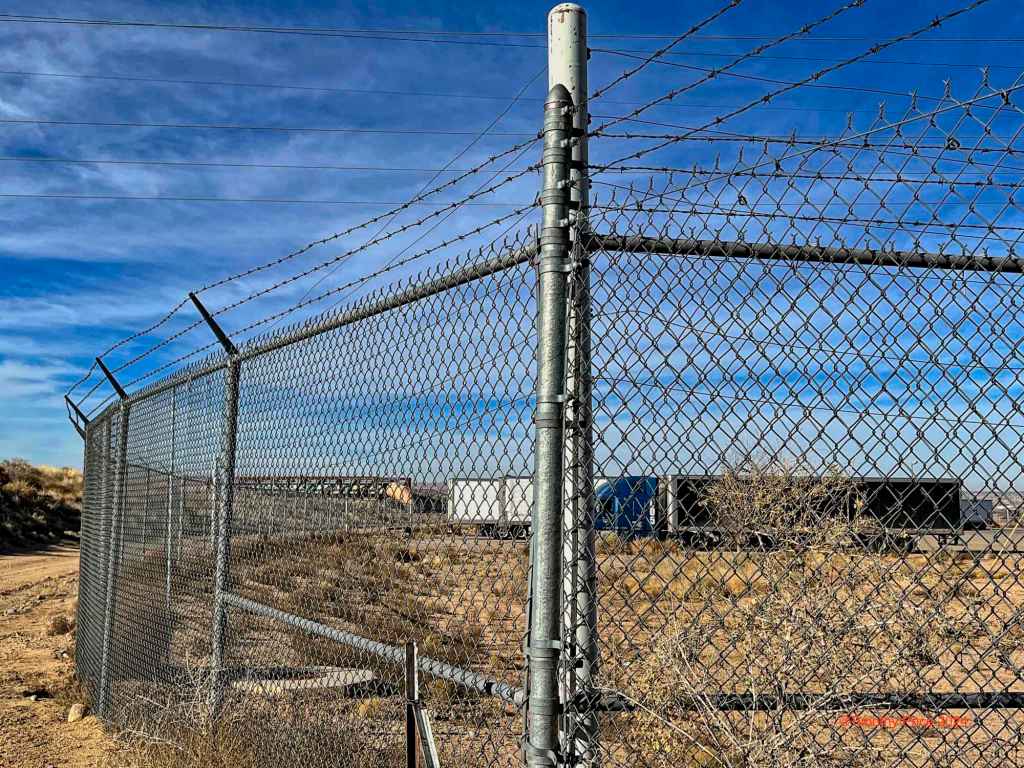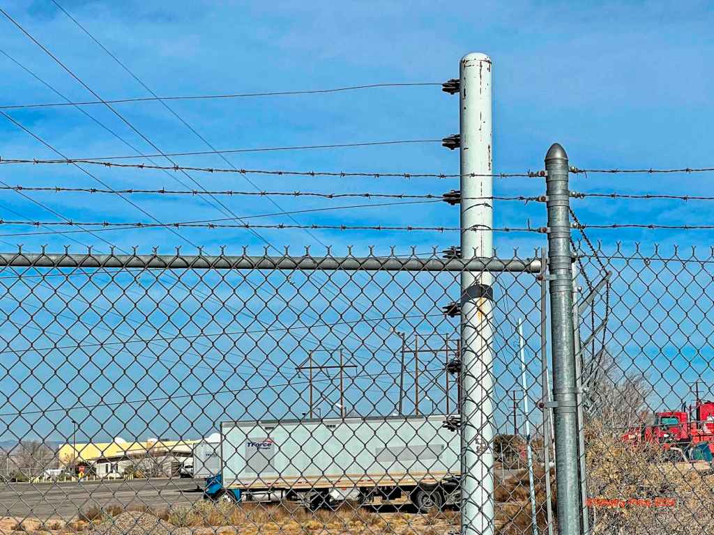 Serious security: An electric fence behind the cyclone fence and barbed wire.