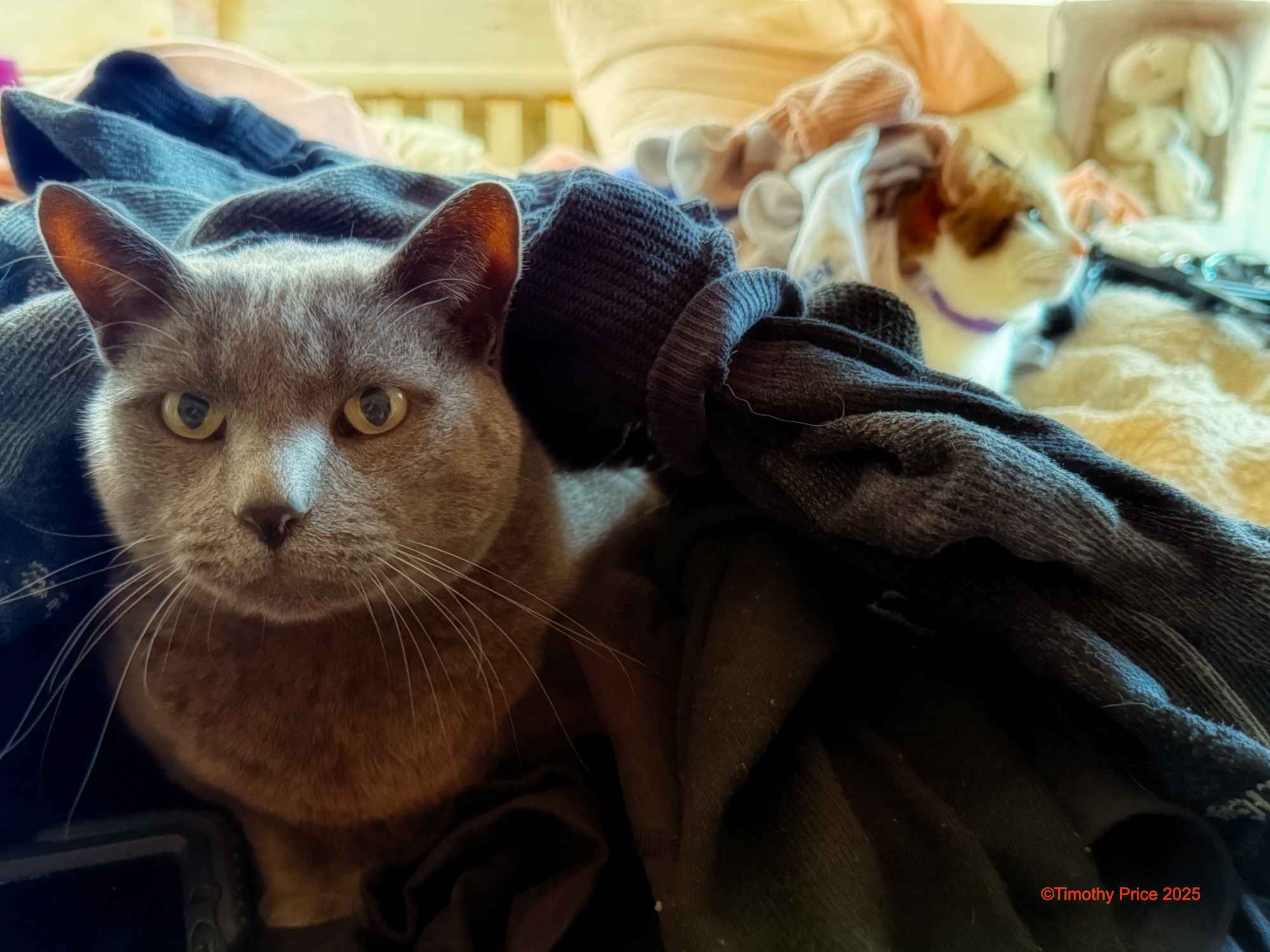 Glenda upstairs. Gwendolyn downstairs. Loki in the middle.