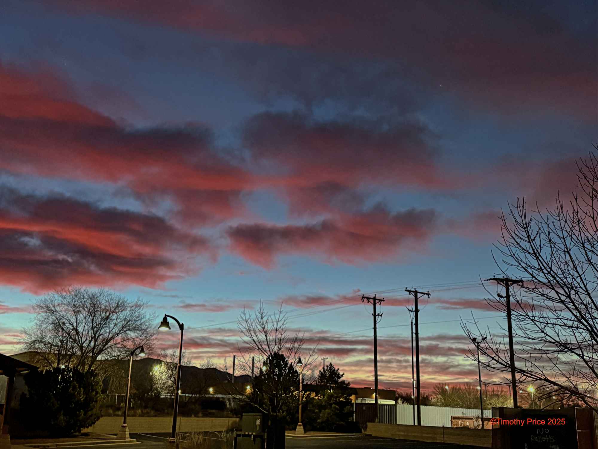 That’s a striking pink cloud-scape, Tim. I love the light touching a twig of the Tangle Heart tree. It makes me think of ET. Hugs