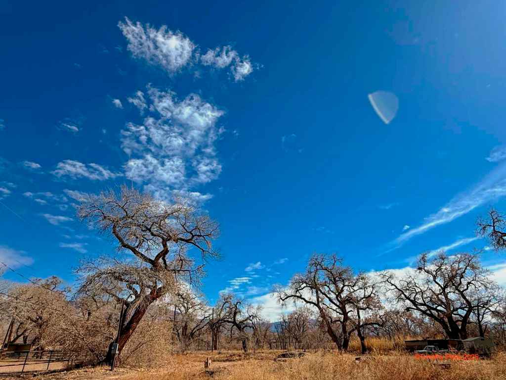 The mid morning sky is intriguing, and not just because of the “UFO.” The clouds appear uncommon, at least for here. Even with the blue sky and brown landscape, the entire image makes me feel I am looking at a place I have not been to yet. 🙂