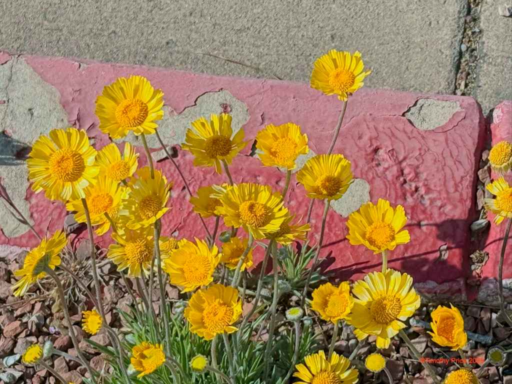• Those are parking lot flowers. That’s all I know. Male and female birds are often really differently colored. Thanks, Resa.