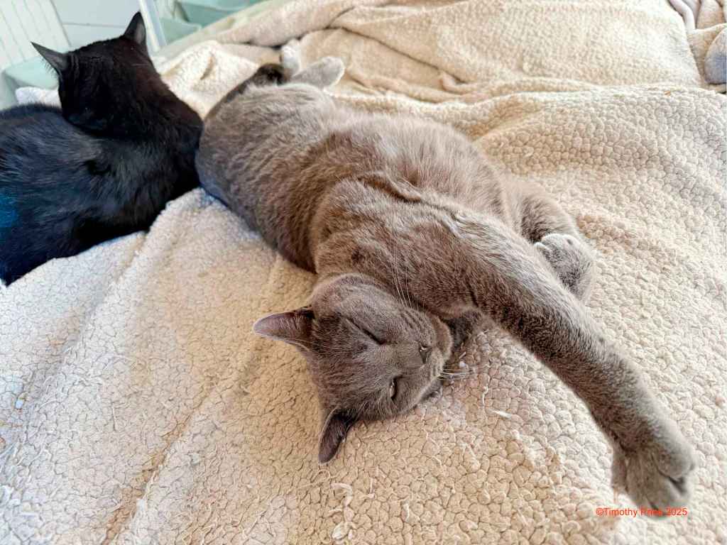 1. The mallards are enjoying their stroll while cats lounge in comfort. The gold of those flowers against the pink makes a beautiful composition. Too cloudy and rainy up here yesterday to see the waxing moon. It was a beautiful uniform silver cloud and mist in the hills day with a gentle rain.