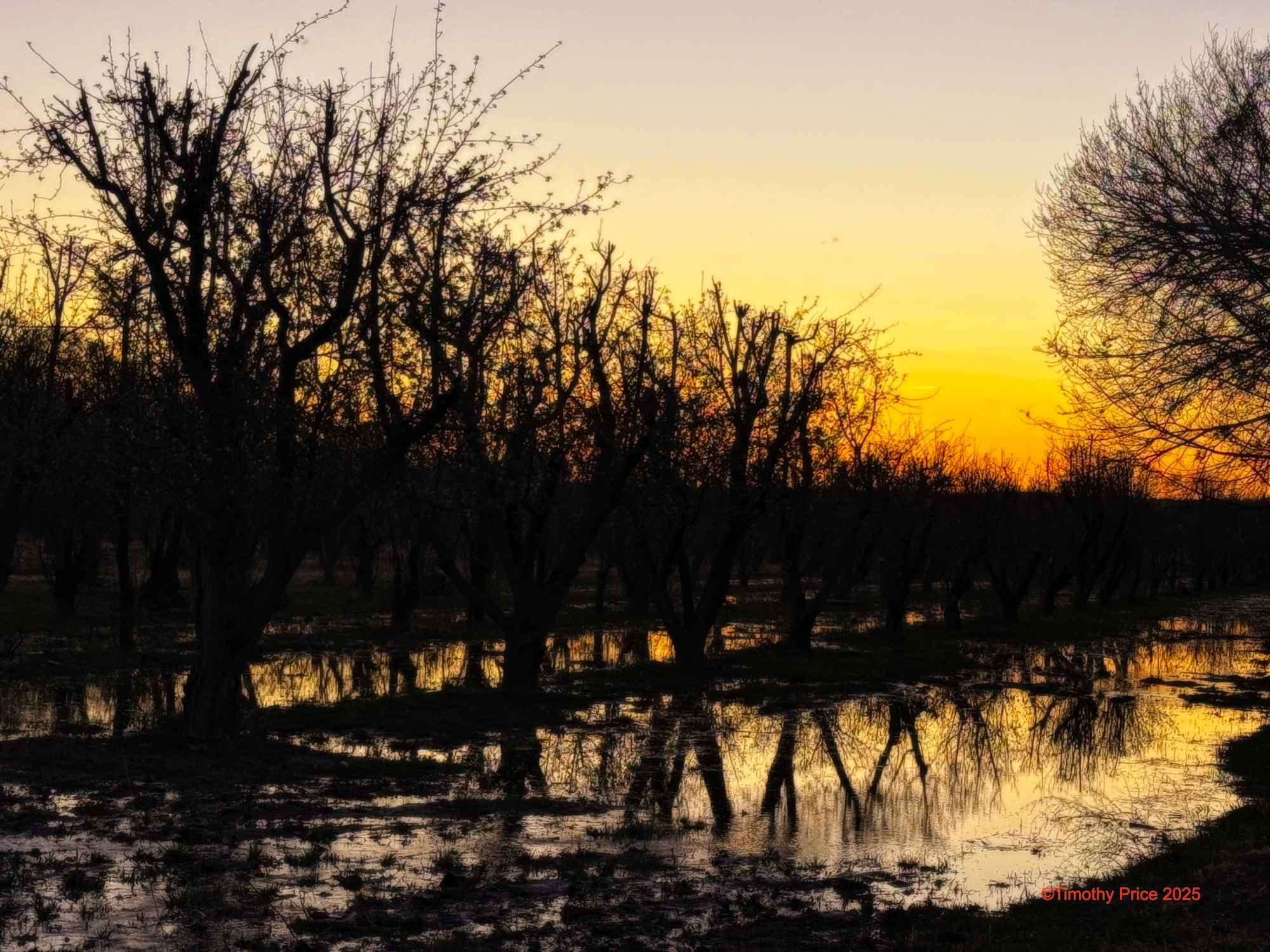 I do see Nora, and really love that composition with the tangled trees in black against that fading gold sky. That is a fantastic image. I hope you see owlets soon. The apple orchard reflection in the irrigation waters is beautiful too. You find so many wonderful things to share with readers.