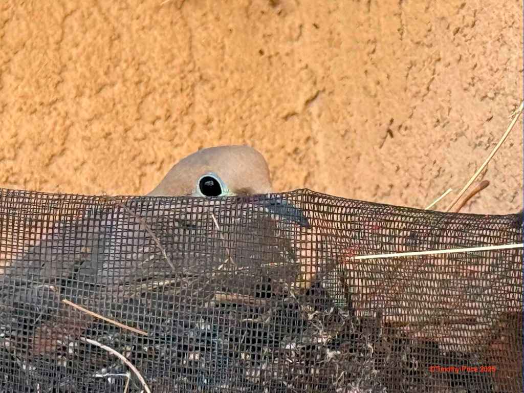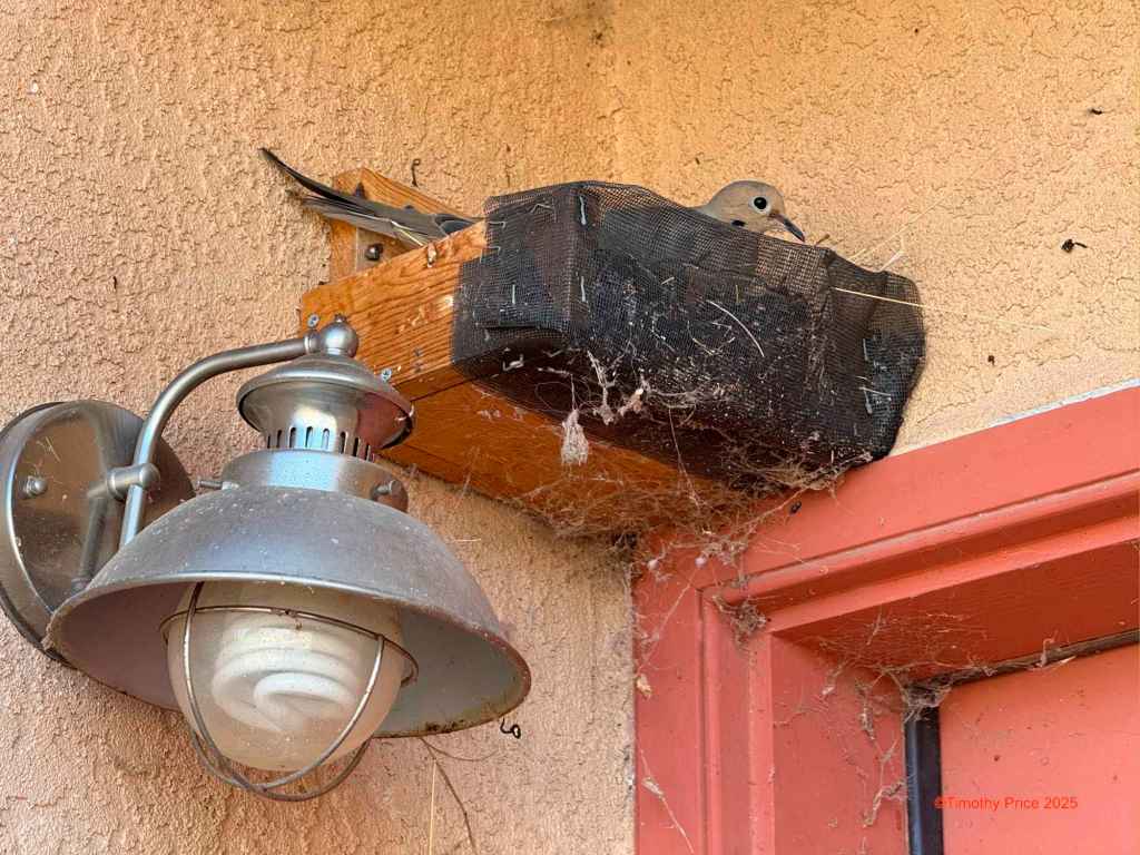 The mama dove is in the nest again. I don’t know if she laid more eggs.