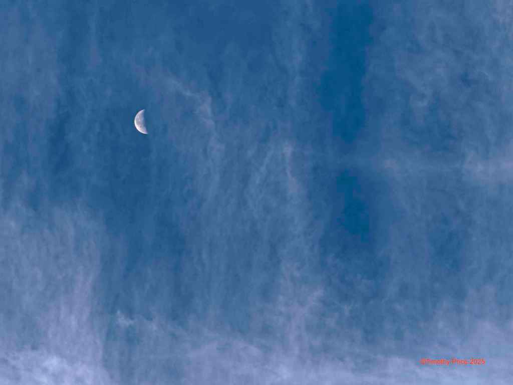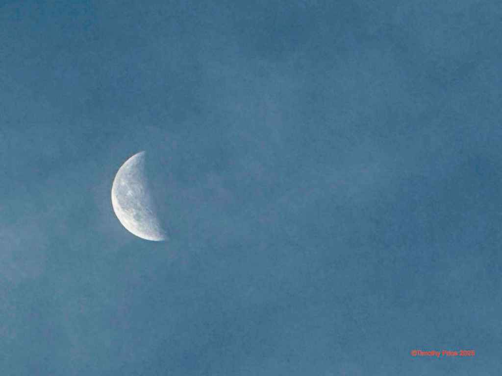 It has been clear enough to catch the moon up here. She is in last quarter now. We are supposed to get clouds moving in tonight and have a predominately cloudy day tomorrow.
